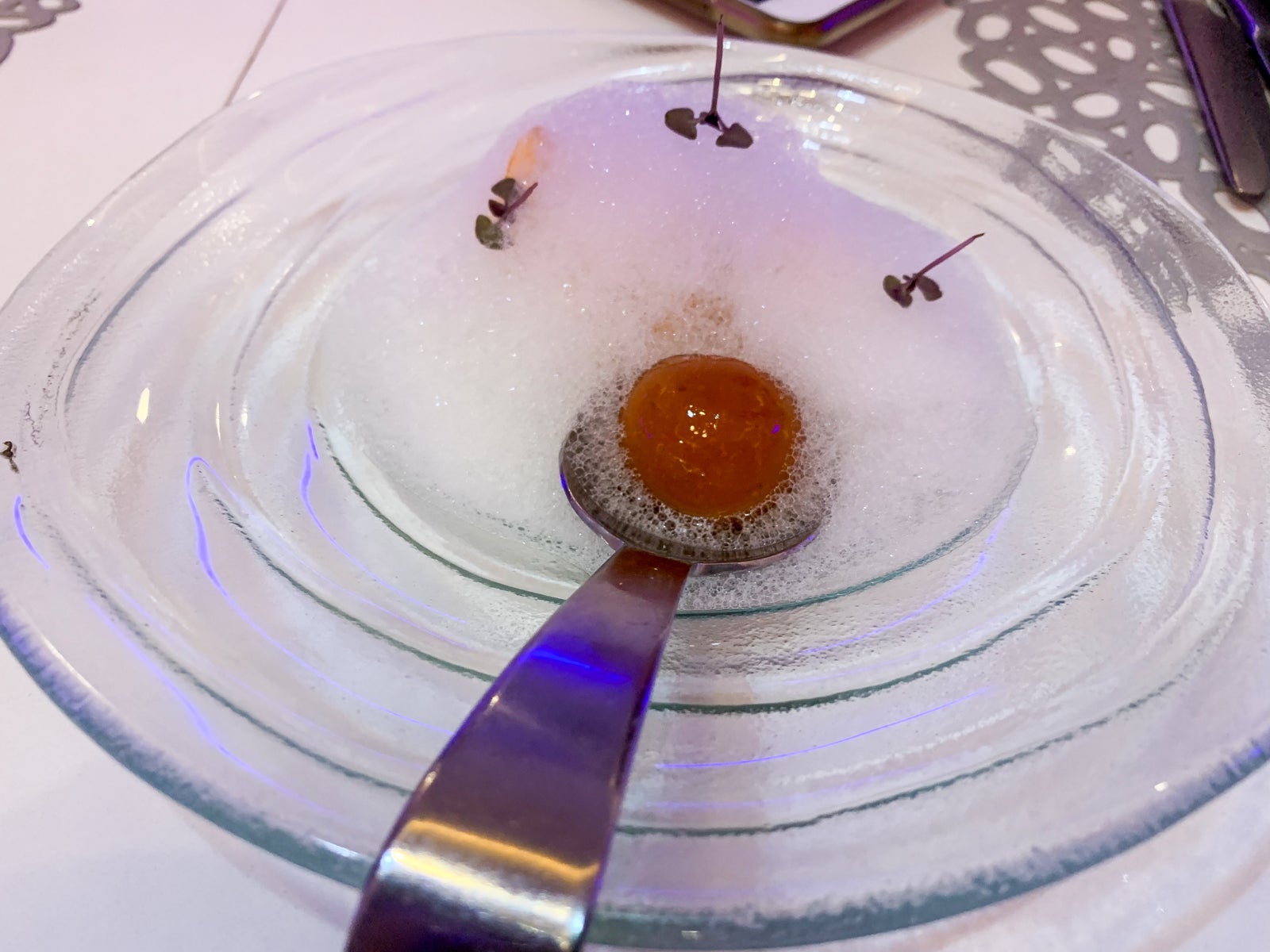 The fancy, astronaut-themed Spacewalker was fun but confusing. The food was solid, but you could tell that whoever came up with the concept missed the mark. For instance, the shrimp cocktail was served in foam with spheres of cocktail sauce that didn't quite break the right way. For dessert, I had a sphere of white chocolate with a passion fruit parfait in the middle. Hot, dark chocolate was supposed to be poured over it to split open the sphere. But by the time it got to my table, the chocolate had cooled, and effect was less volcanic eruption and more lump of cold rock.