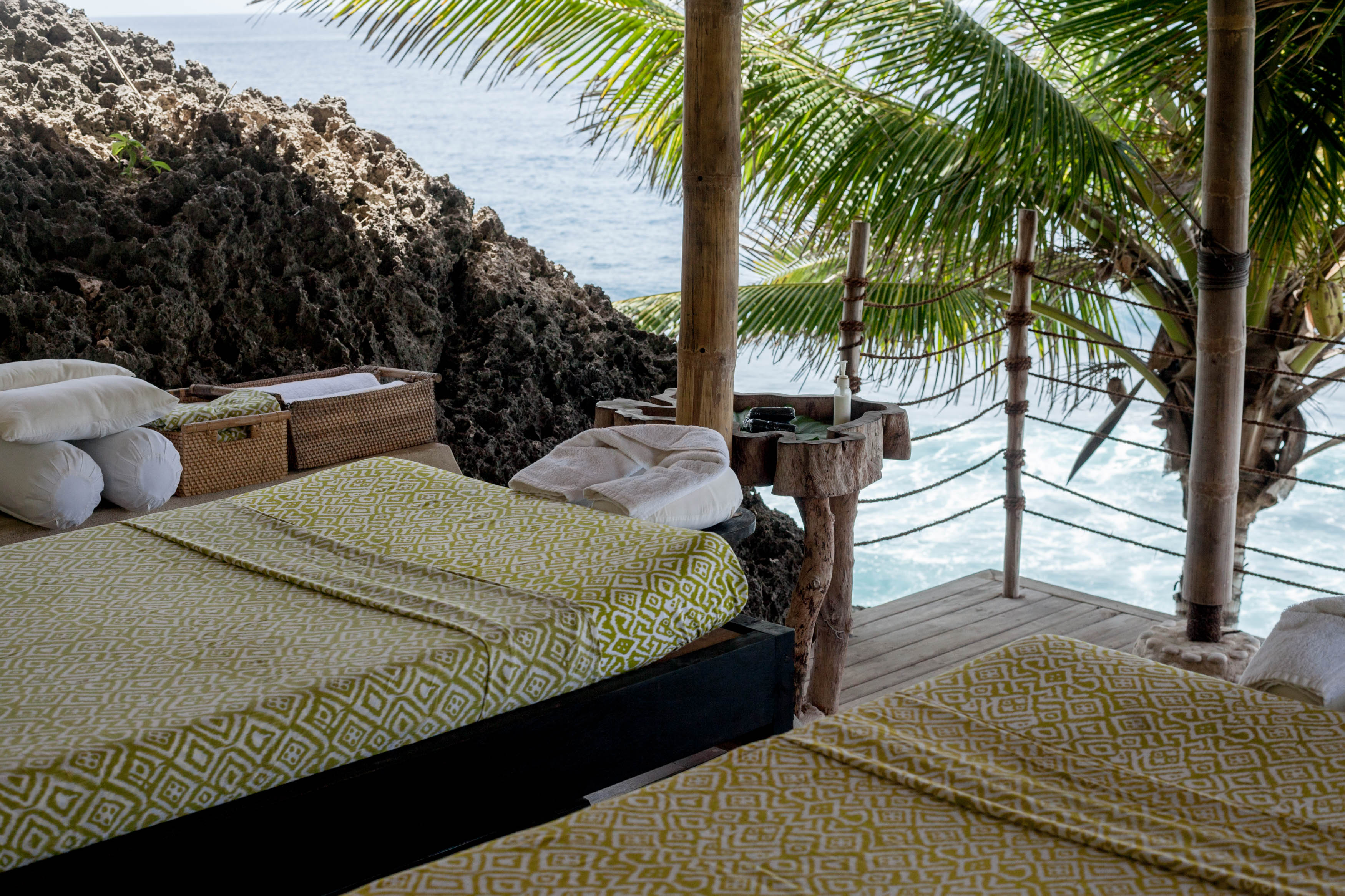 It's technically optional, but I recommend taking the 90-minute safari trek through beautiful Indonesian-island rice patties to the spa, which is perched on an insane cliff overlooking the ocean. It's not the easiest hike in the world — especially because it can be pretty hot, even in the earlier morning — but along the way, you'll get to stop by a traditional Sumbanese village and see how the people of the island live. Sure, you'll burn off some calories but will surely end up gaining them all back once you eat your breakfast or lunch cliffside before your marathon of spa treatments begins.