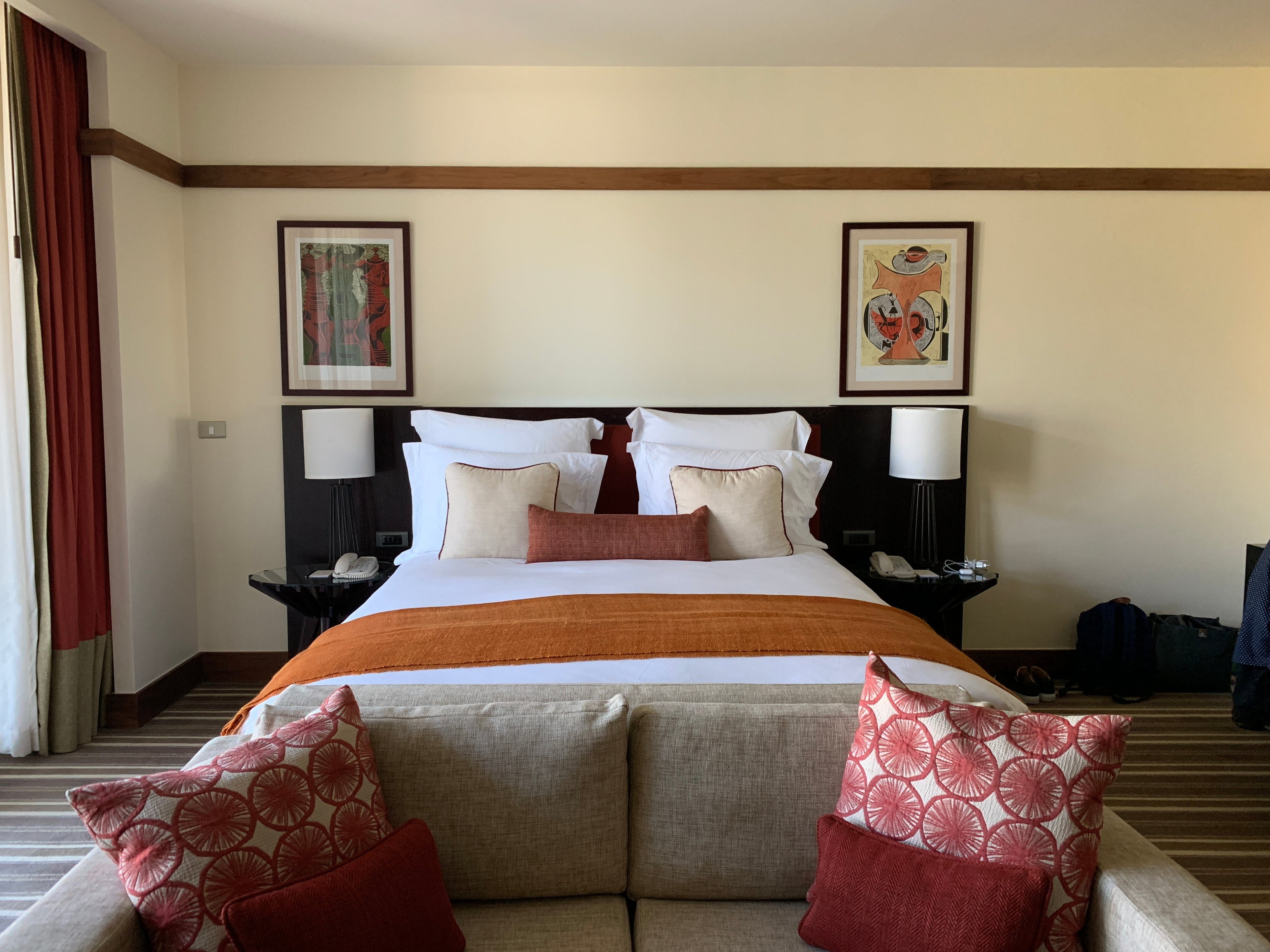 Decorated with chic, contemporary furniture (including a sofa and armchair) and African-inspired artwork, the room looked cool but also had all the traditional amenities.