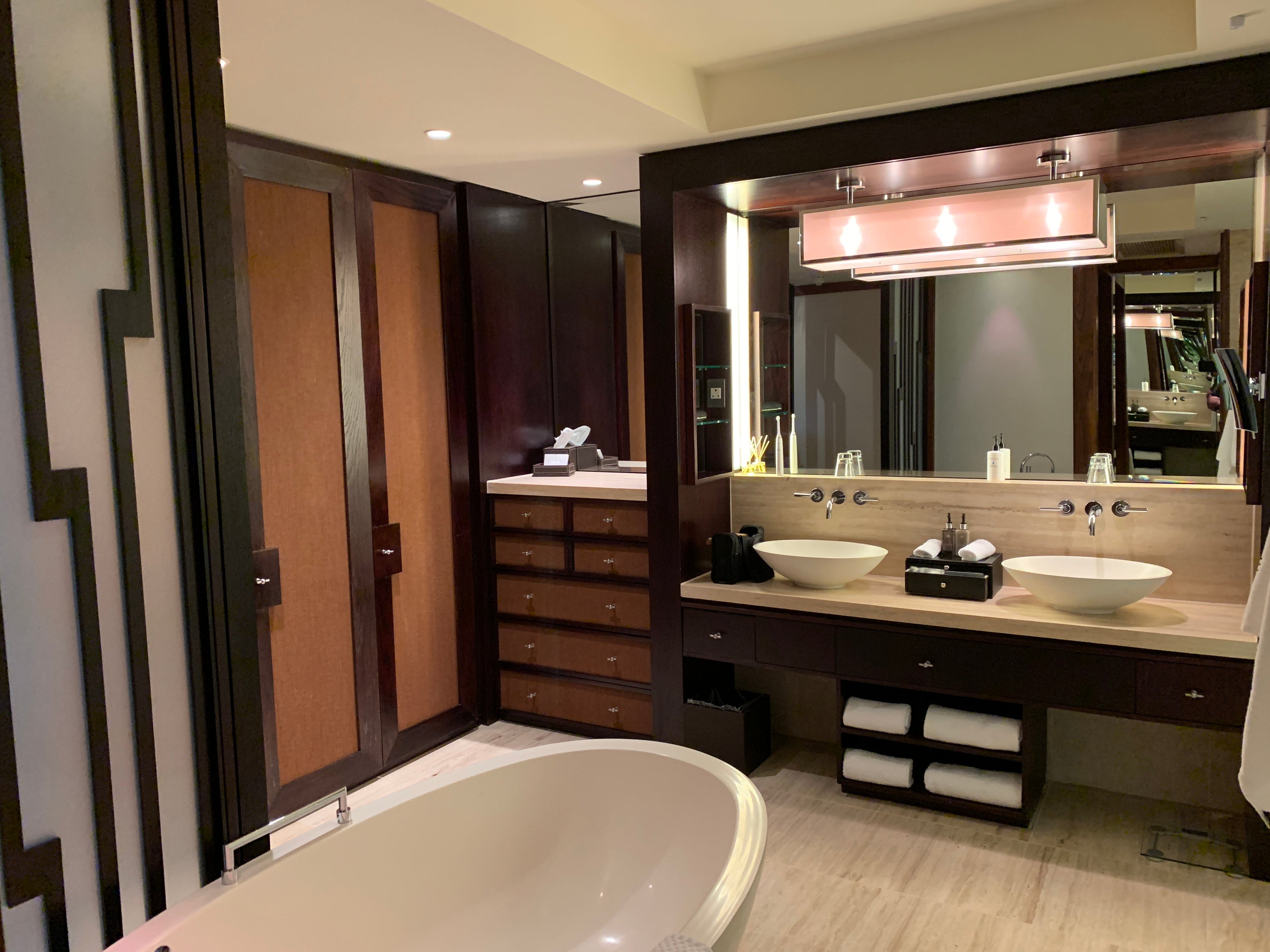 There was a double vanity, a wall of closets and even more storage in the form of a large dresser to the left of the vanity. The safe was in here. I noticed a hair dryer and bathrobes, too.