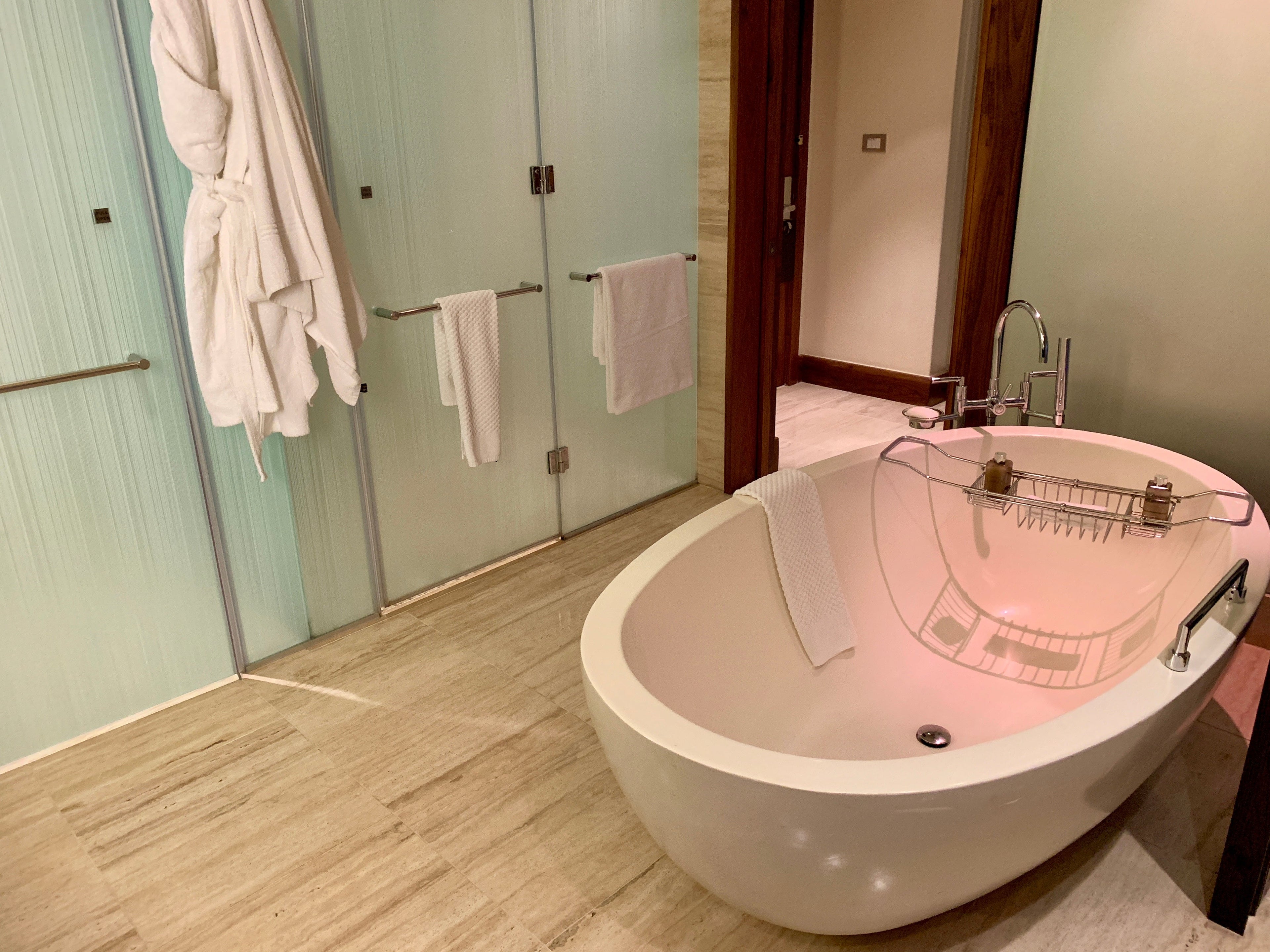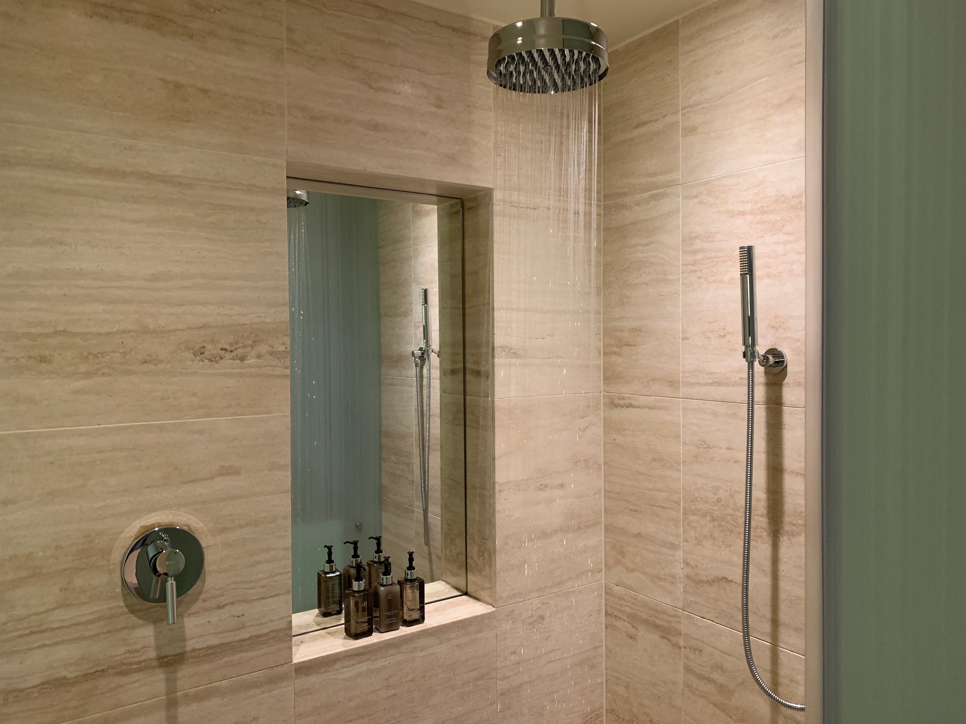 The shower was huge and featured some of the best water pressure I've ever experienced. The hotel had a warning sign on the outside of the shower door telling guests to limit their showers to two minutes or less. As someone who should really pay more attention to his water usage, it was actually an eye-opening experience, and I did my best to adhere to the two-minute suggestion, though I'll admit it was difficult given how awesome the shower was.