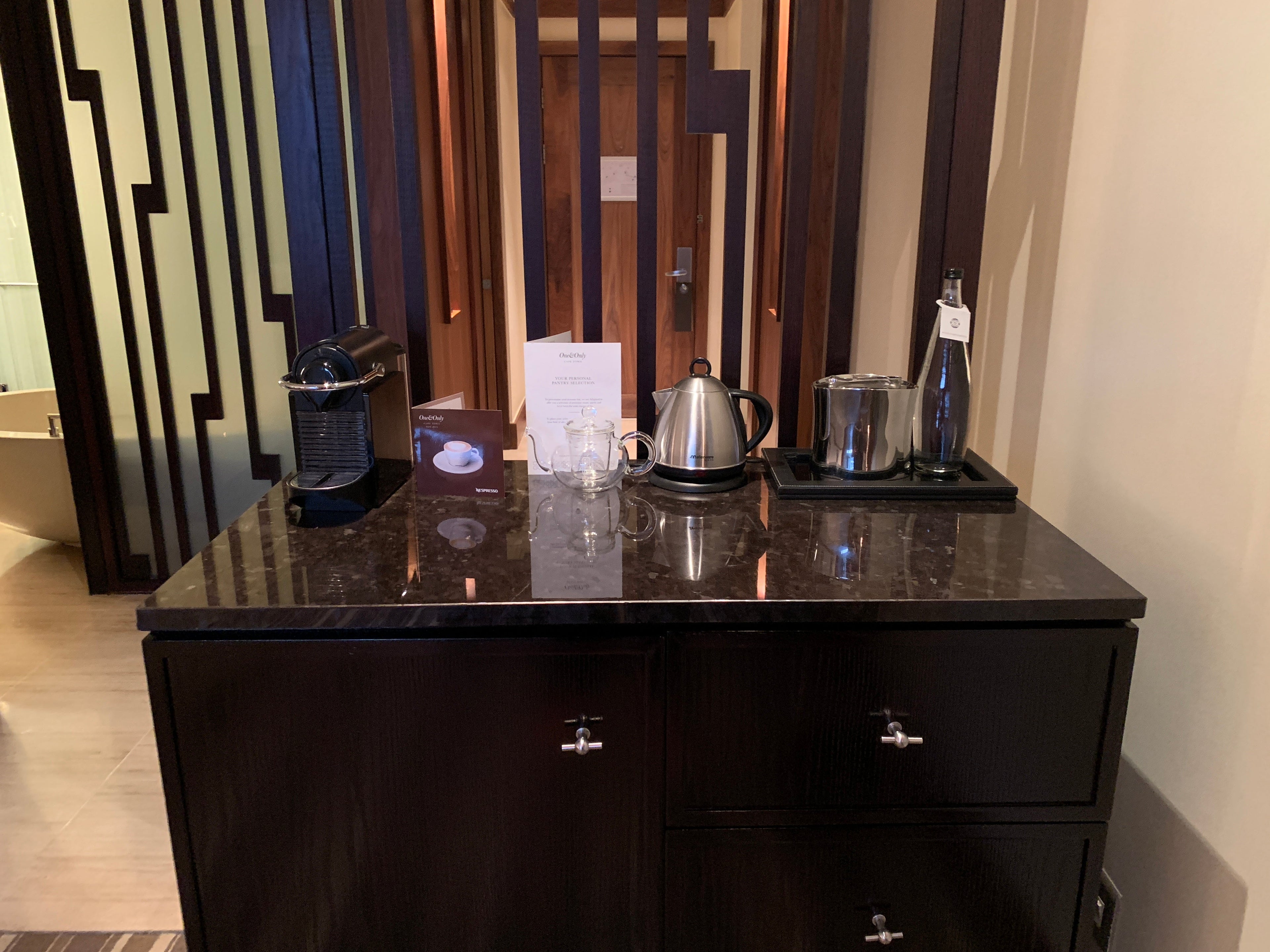 The room had a Nespresso machine, minibar and large bottle of still water that was replaced daily. The mini-fridge was stocked with the usual, as well as a drawer with candy and salty snacks.