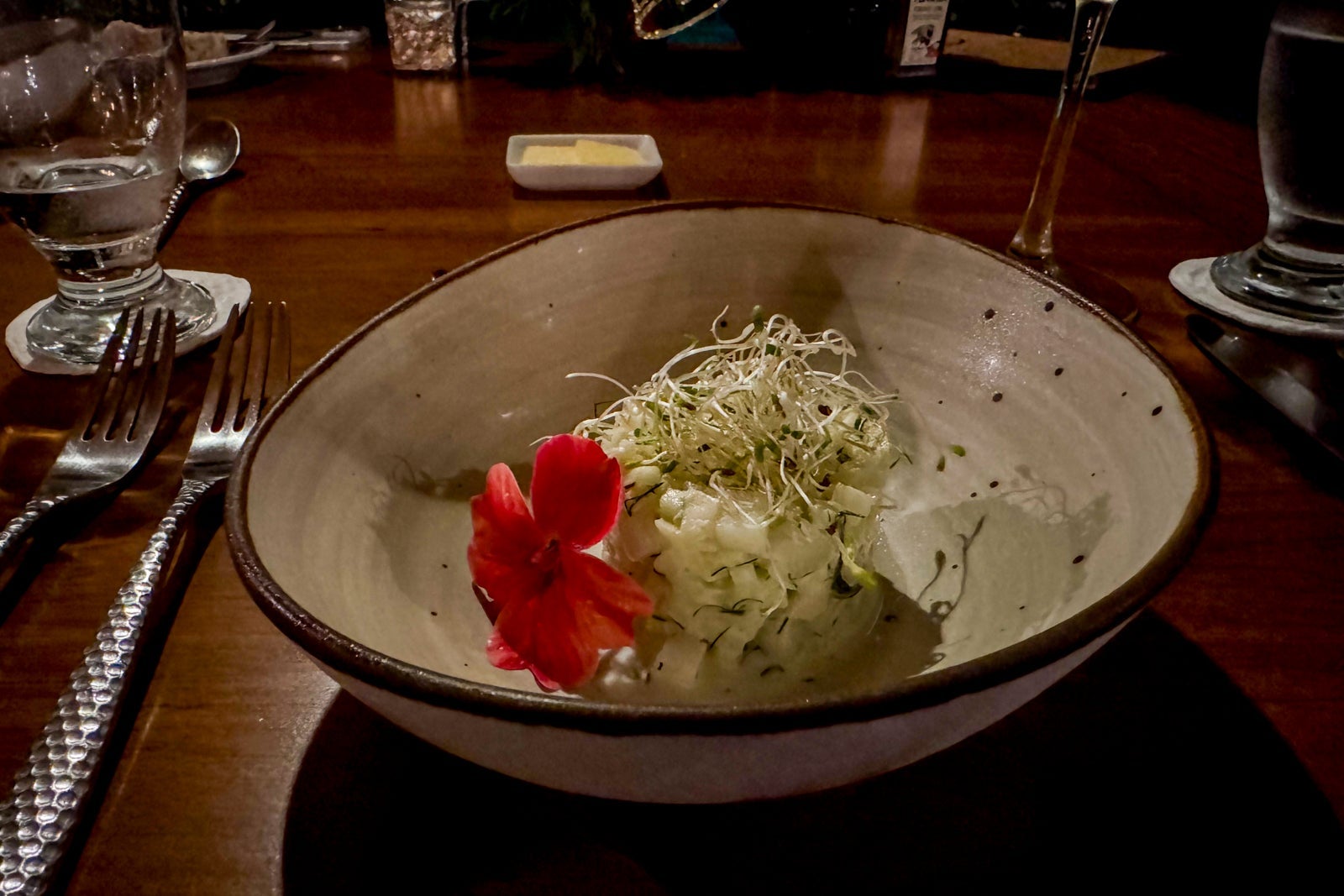 The overall ambience is one of a fine dining establishment that has somehow apparated to the middle of the jungle, though the warmth and friendliness of the service — one of our servers regaled us with tales of her family home in a Nicaraguan archipelago between courses — embody the Costa Rican cool-vibes catchphrase of "pura vida."