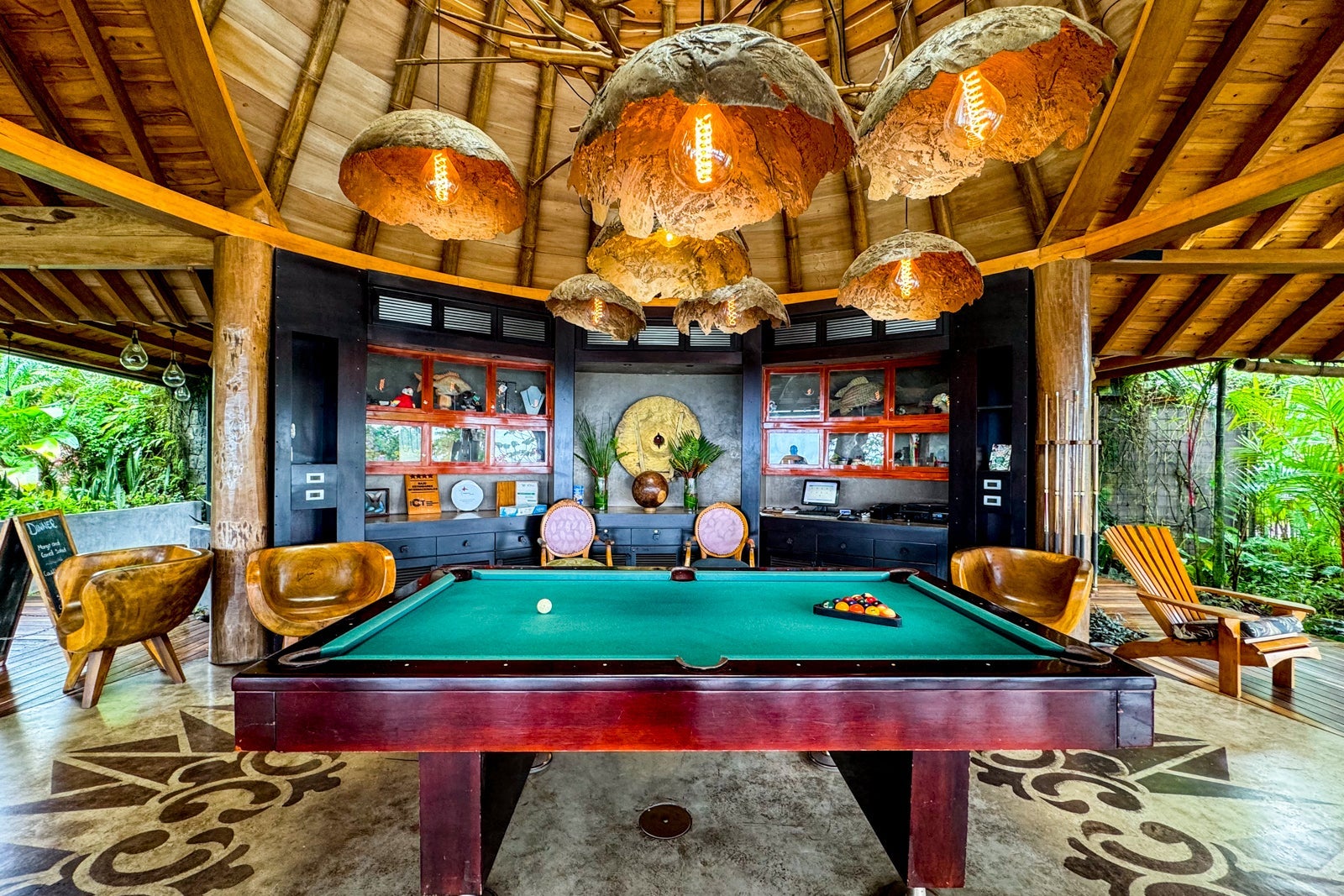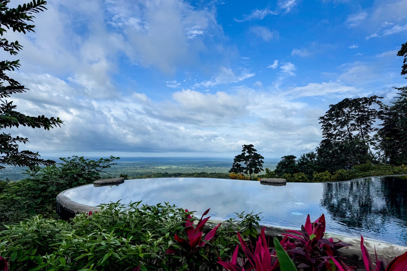 After you arrive at the main lodge, with its turf roof and eclectic art collection, settle in for a cup of traditional Costa Rican chorreado coffee (or something stronger) in one of the cozy seating vignettes and cast your gaze past the curviform infinity pool for views over the lowlands all the way to Lake Nicaragua in the distance.