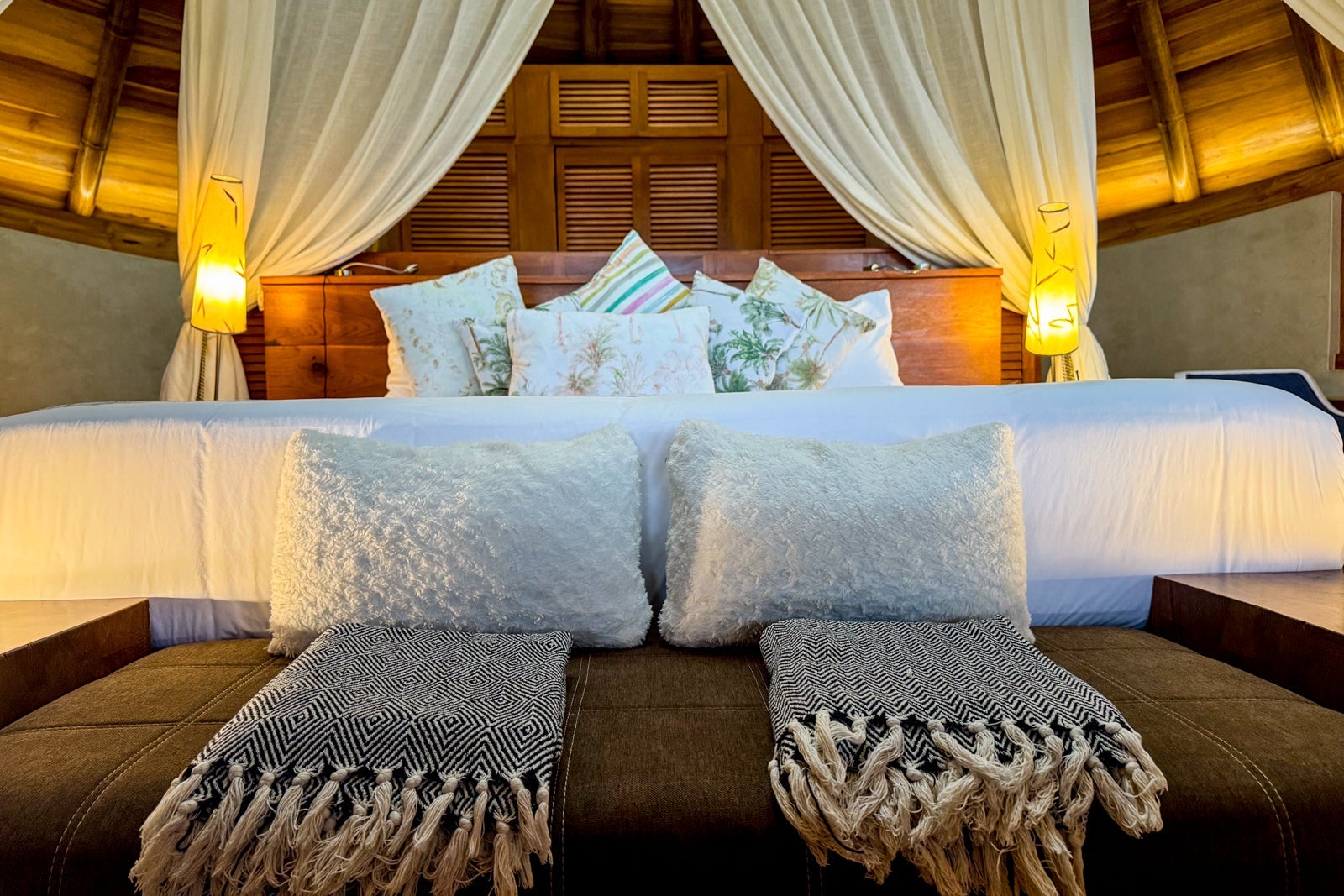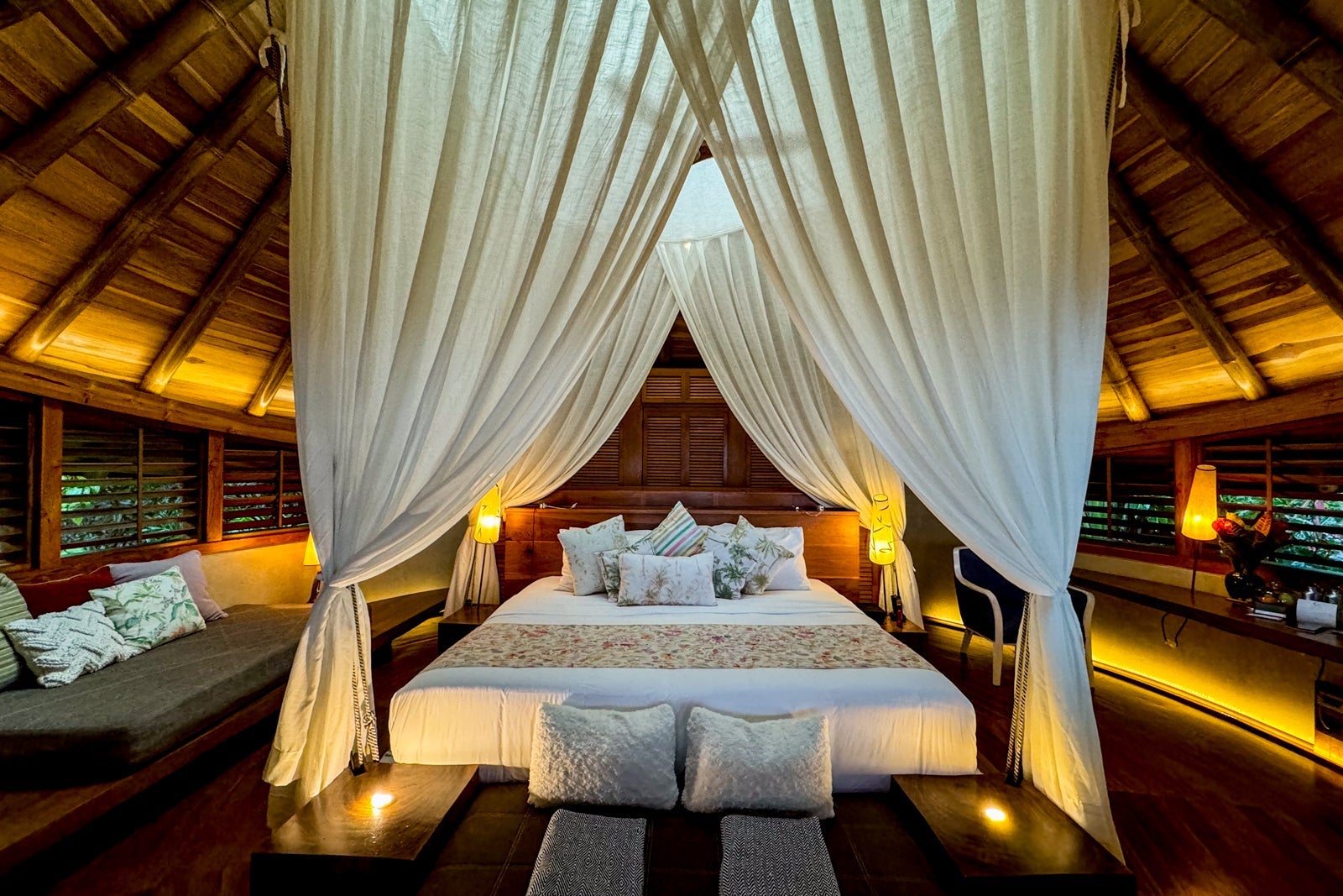 Inside, the suites have peaked bamboo roofs with ocular skylights meant to direct positive energy inside during the day and cast out negativity at night, and are inspired by the roundhouses of Indigenous pre-Columbian peoples.