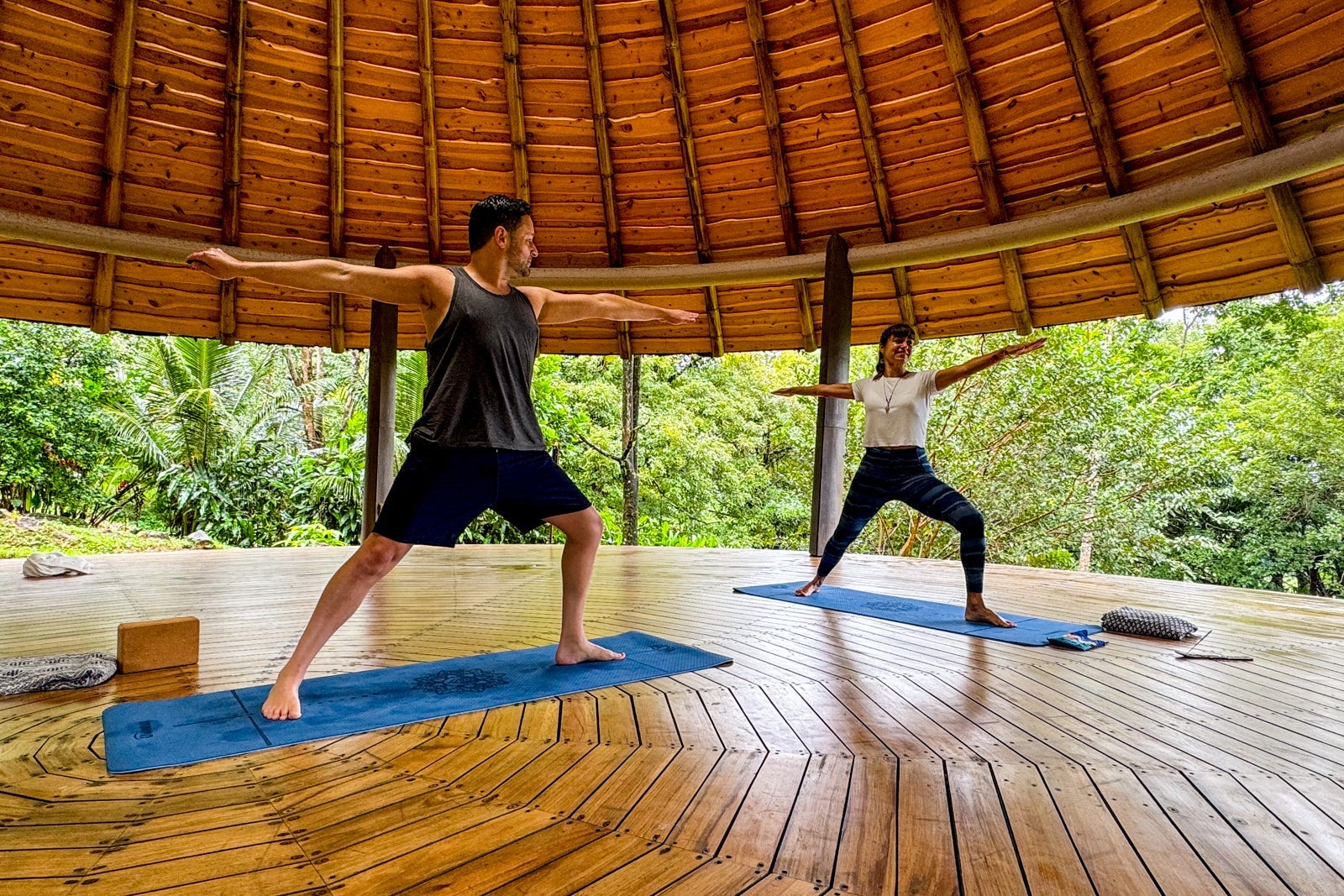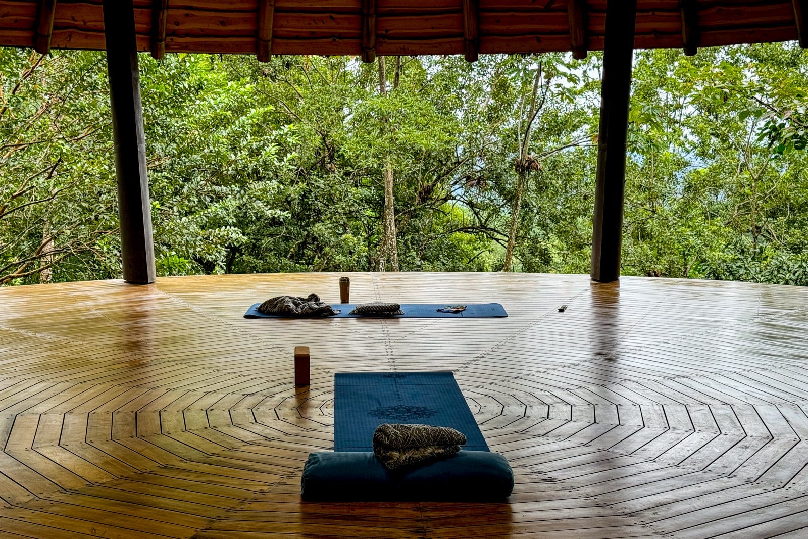 The lodge has a Balinese-inspired open-air yoga pavilion that feels positively magical as you flow through warrior poses while a diluvial downpour passes by.