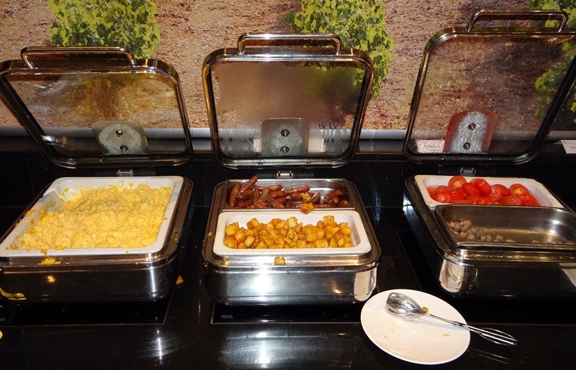 The buffet had many options, including eggs, cereal and fruit, among other items.