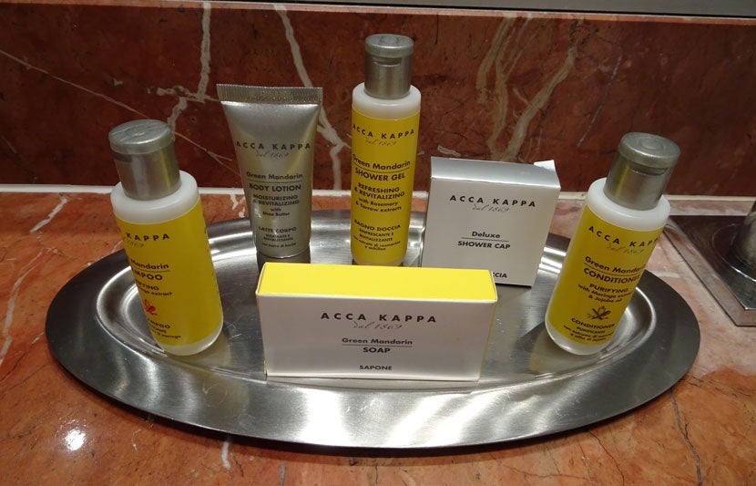 The amenities were from Acca Kappa's line of hair and skincare products.