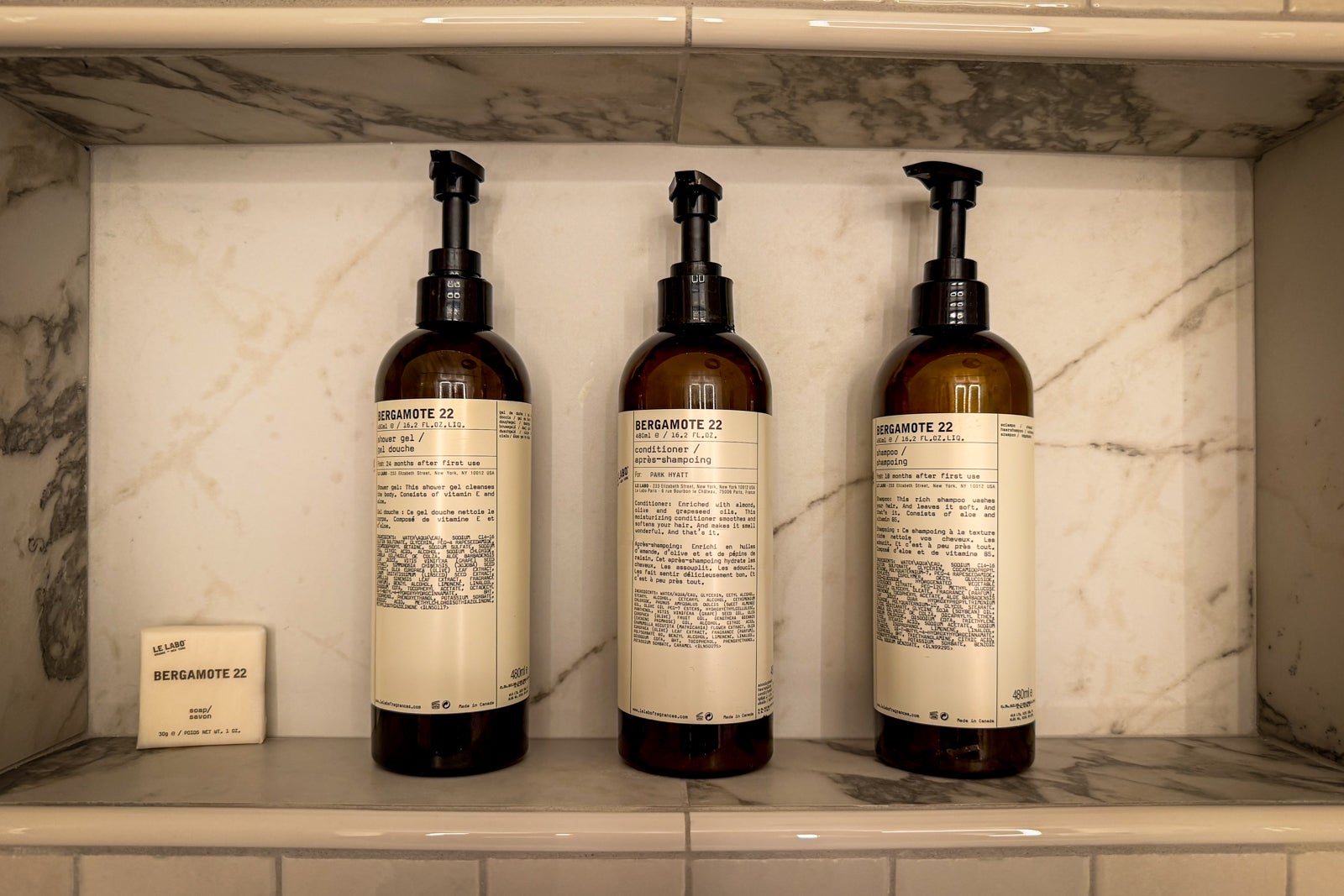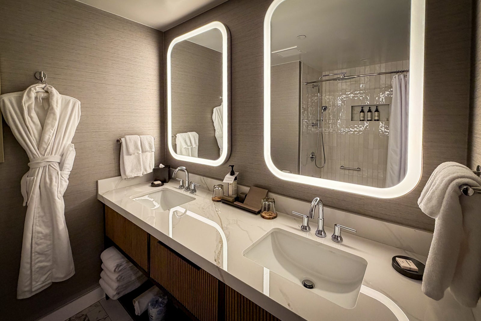 The bathrooms in all of the hotel's rooms and suites also benefited from the upgrade. They now have a much brighter and sleeker look (think: vanities with reeded wood accents, crisp white shower tile and marble floors and counters with eye-catching veining) and come outfitted with Le Labo bath products and fluffy robes and towels.