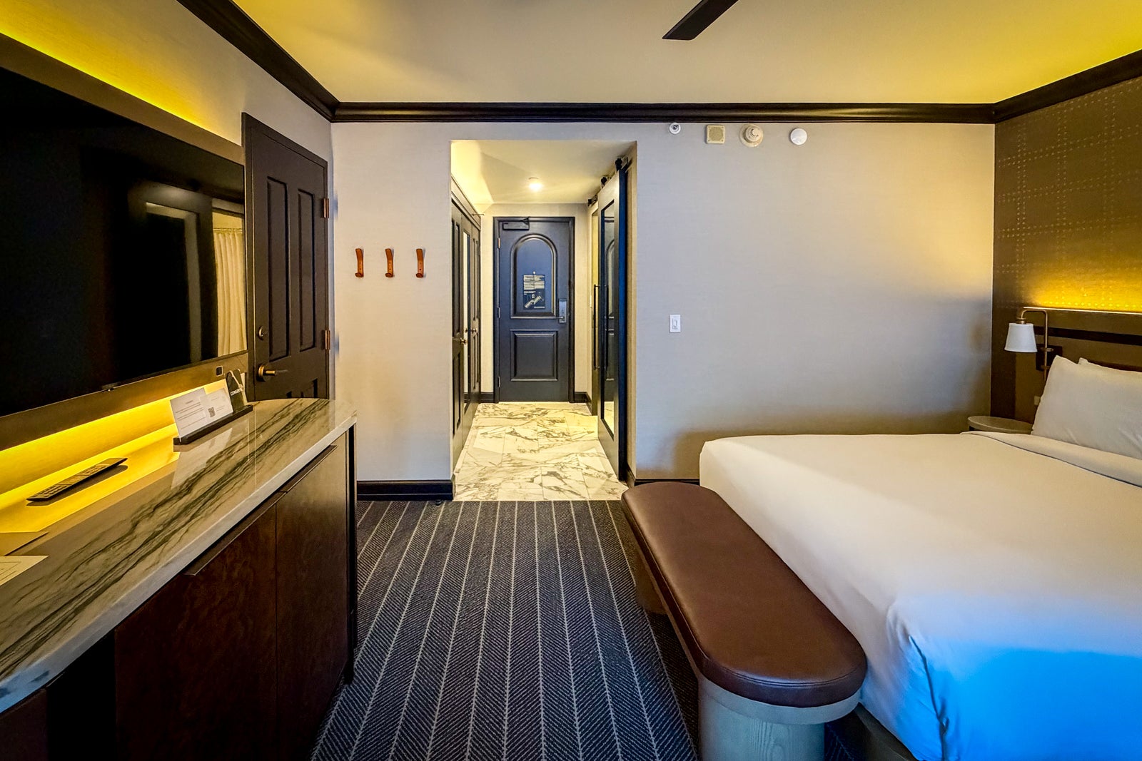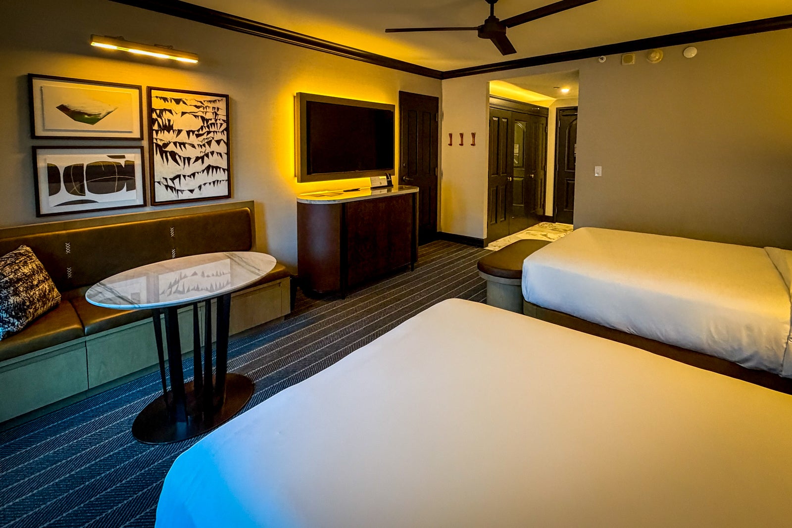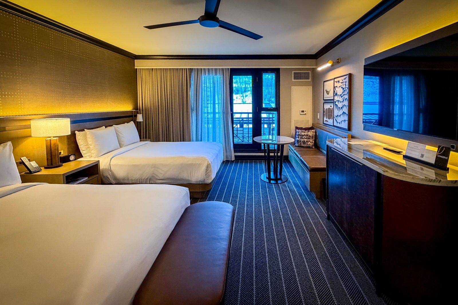 You'll find ski-inspired artwork, along with functional touches such as wall hooks for storing coats and gear and a bench with a table for enjoying some in-room snacks or light meals. I'm also thrilled that many of the rooms now offer space for up to four guests, thanks to trading out double beds for queen beds.