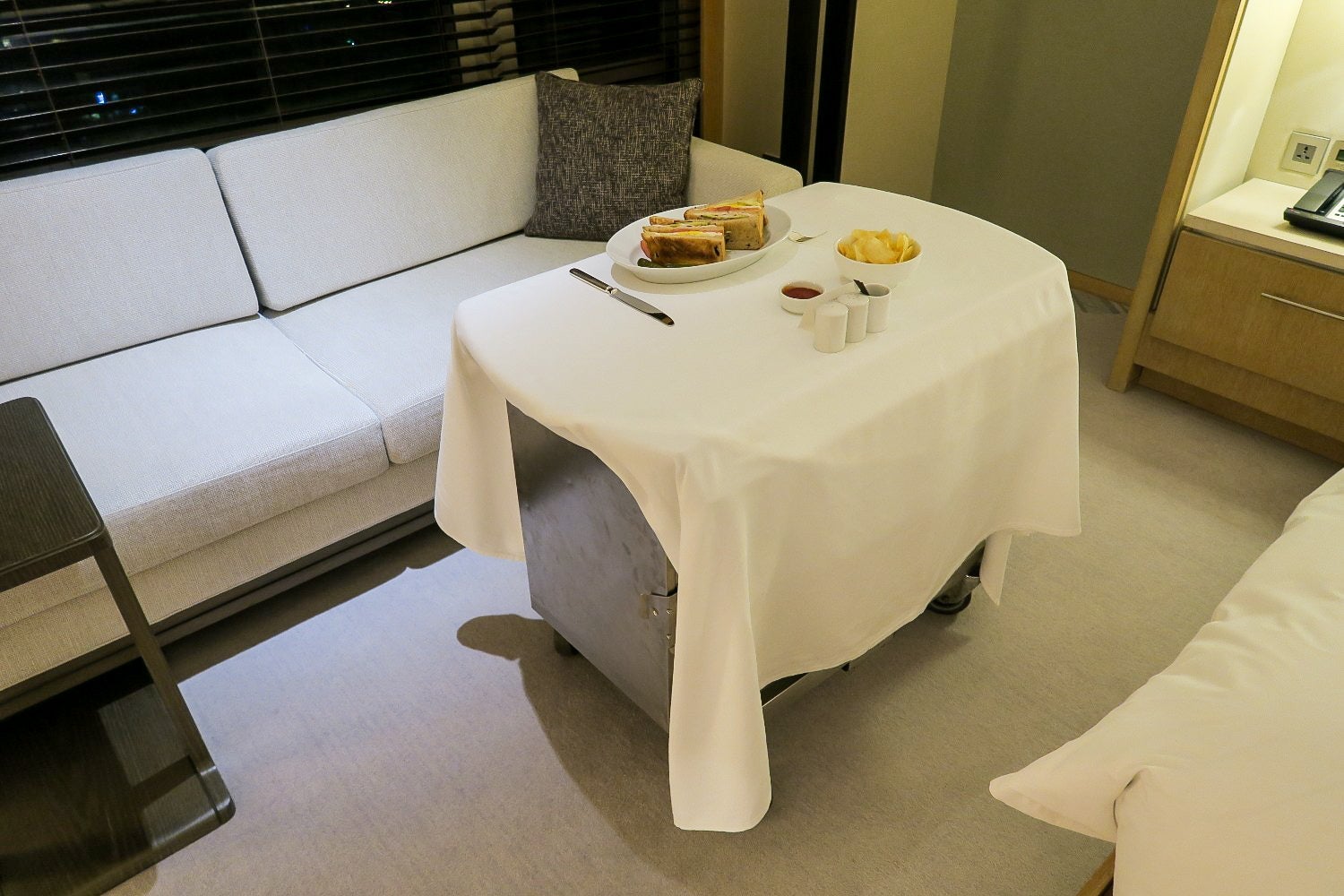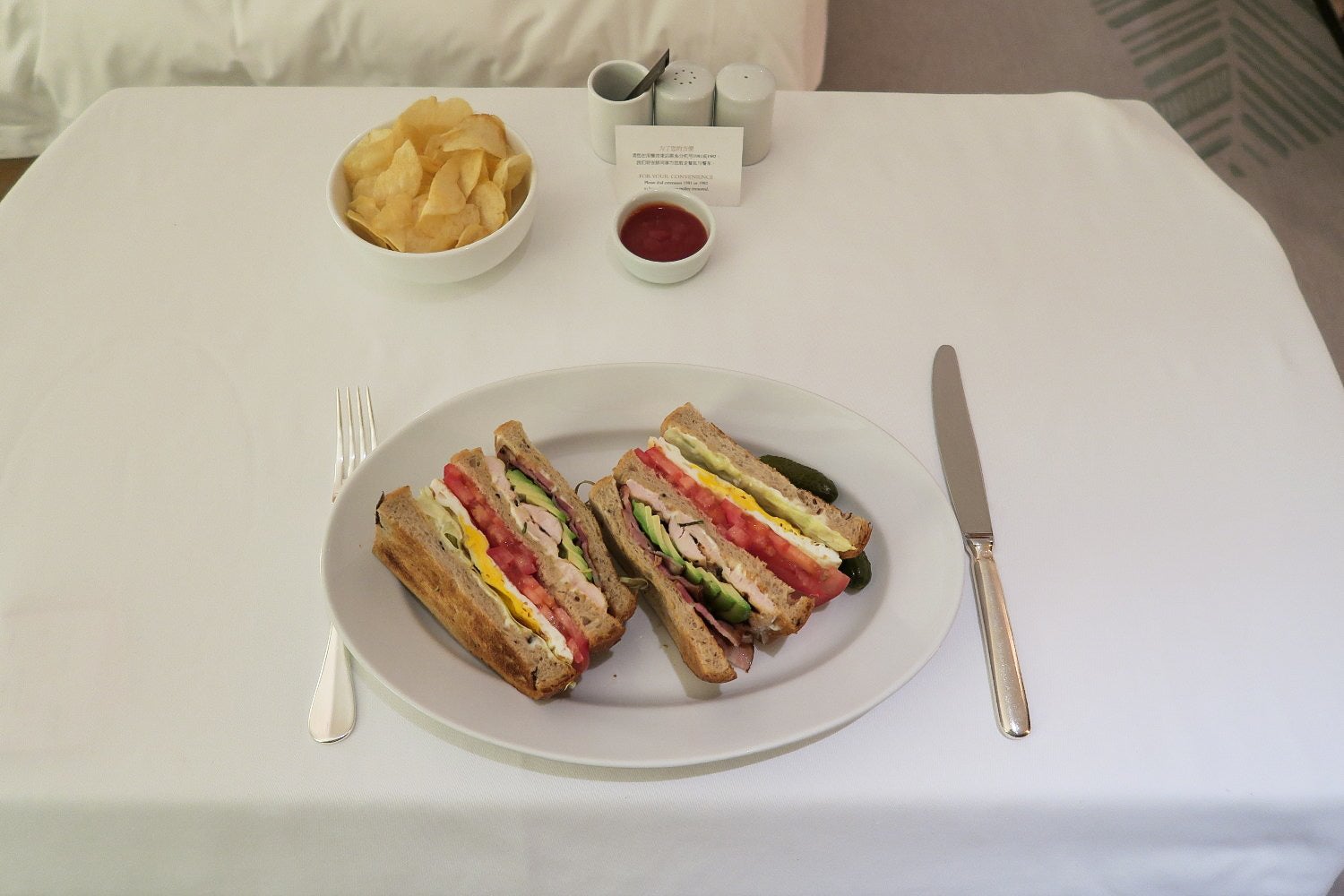 I ordered a club sandwich through room service at 5am my first night. The meal, which cost 155 yuan (about $20), arrived about a half hour after I ordered.