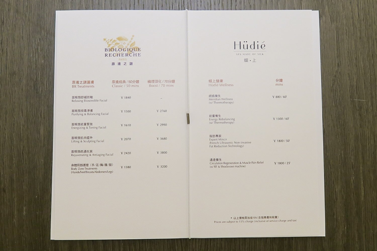 The spa desk was next to the locker rooms on the way to the pool. A menu in my room showed the available services.