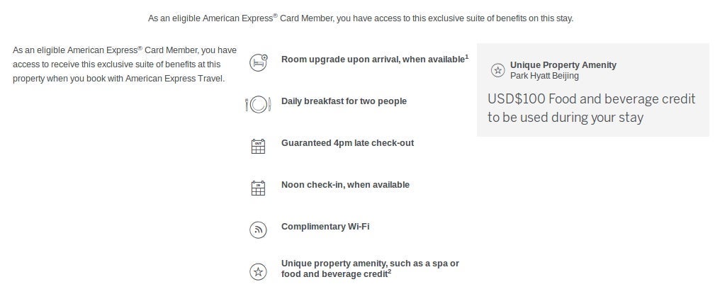 And, since I booked through Amex FHR, I received various useful benefits including daily breakfast, guaranteed 4pm late checkout, complimentary Wi-Fi and a $100 food-and-beverage credit.