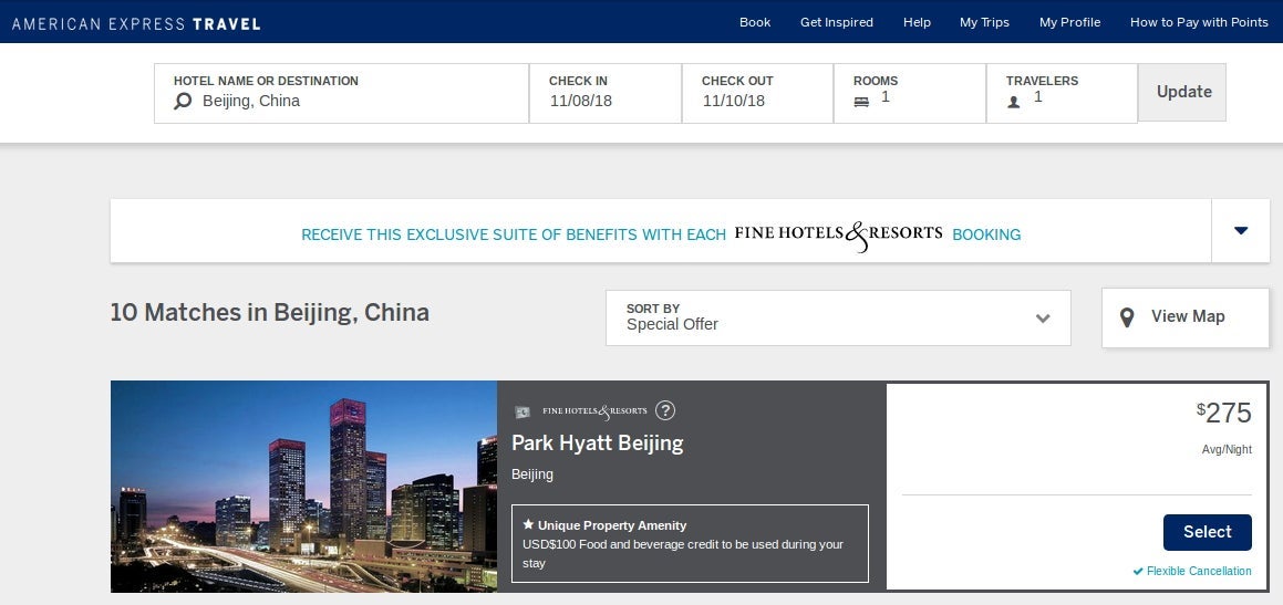 In early November, we learned that people with the Platinum Card® from American Express and the Business Platinum Card® from American Express can earn 5x points on Amex Fine Hotels & Resorts bookings when reserving through Amex Travel. In order to test whether these bookings would also earn hotel loyalty points — spoiler alert: They do — I booked my first FHR stay at the Park Hyatt Beijing. Here's my take on China's first Park Hyatt property, which celebrated its 10-year anniversary in October.