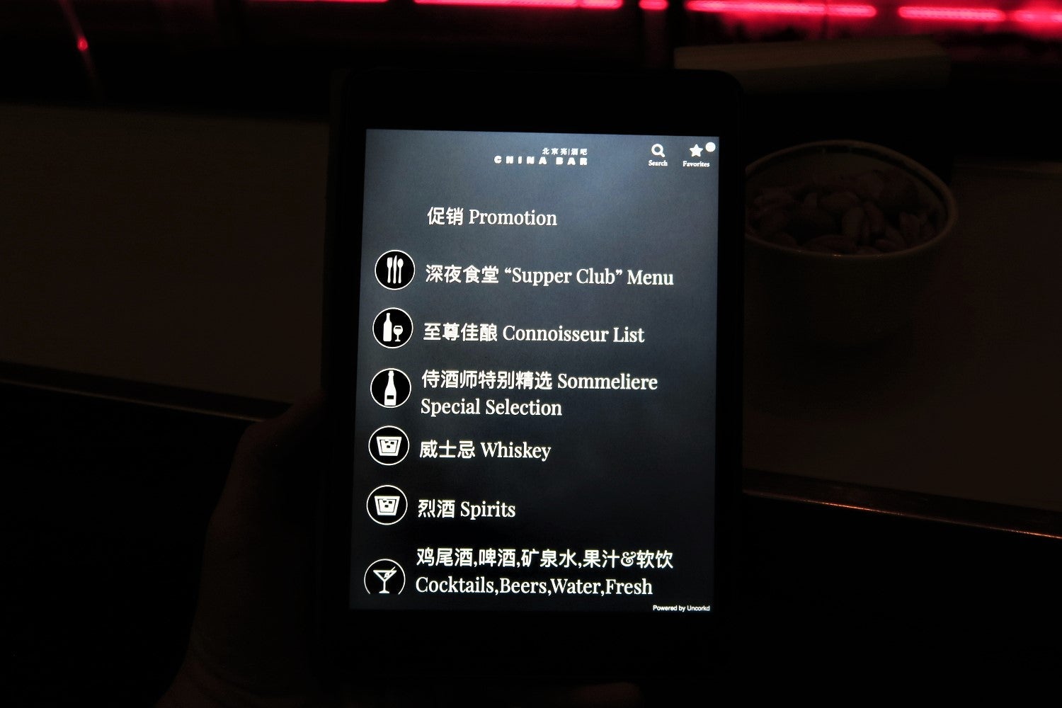 I visited the China Bar on the 65th floor shortly after midnight on Friday night. The bar was busy, but I was immediately shown to a window seat. Menus were available on a tablet.