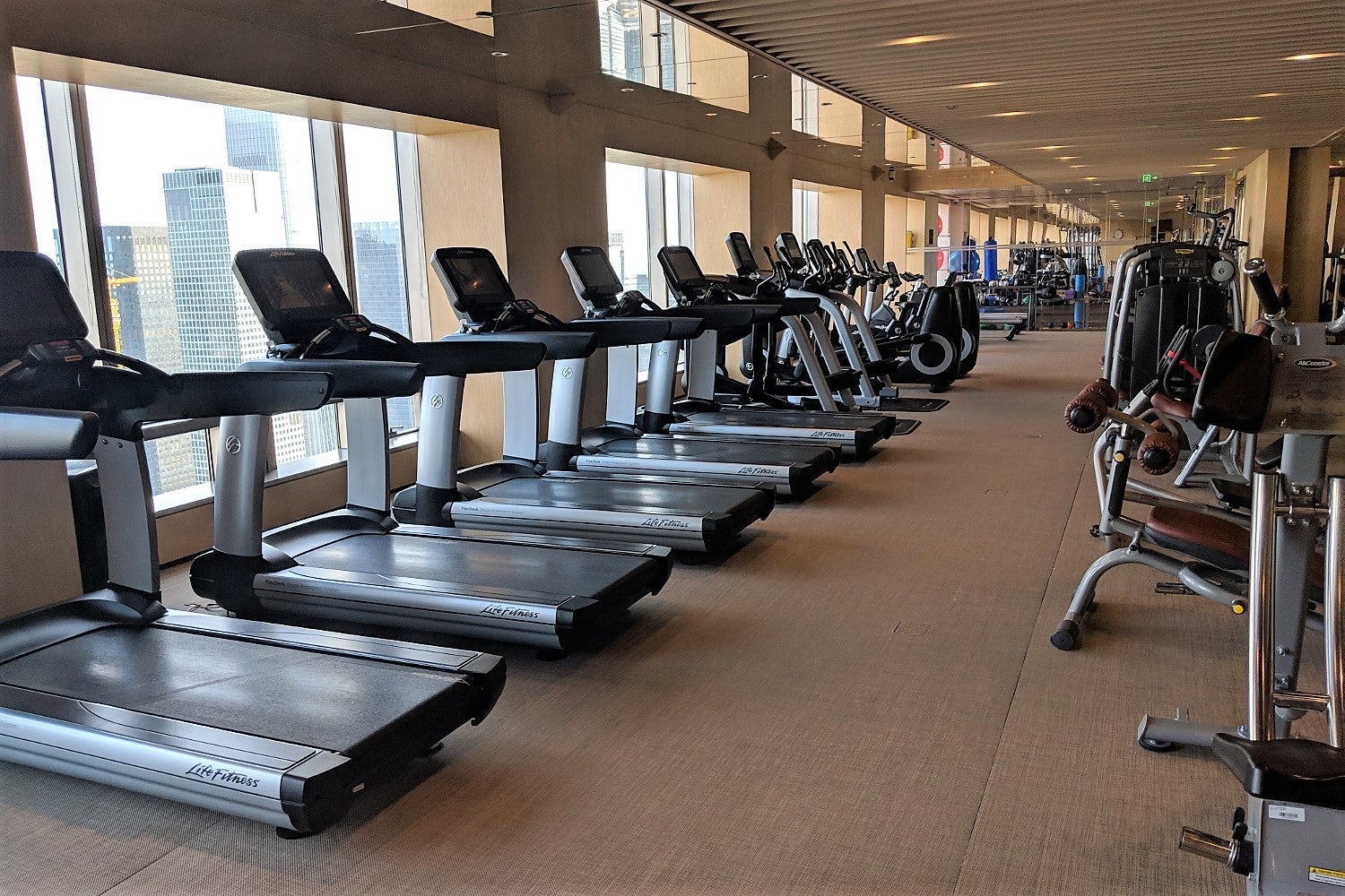 The gym was large and well-equipped. There were treadmills, elliptical machines, exercise bikes, rowing machines, free weights, weight machines and a general-use exercise studio. Everything was new and top-of-the-line — the treadmills had excellent interfaces that allowed streaming from the internet or your own device. There was bottled water, fruit and towels.