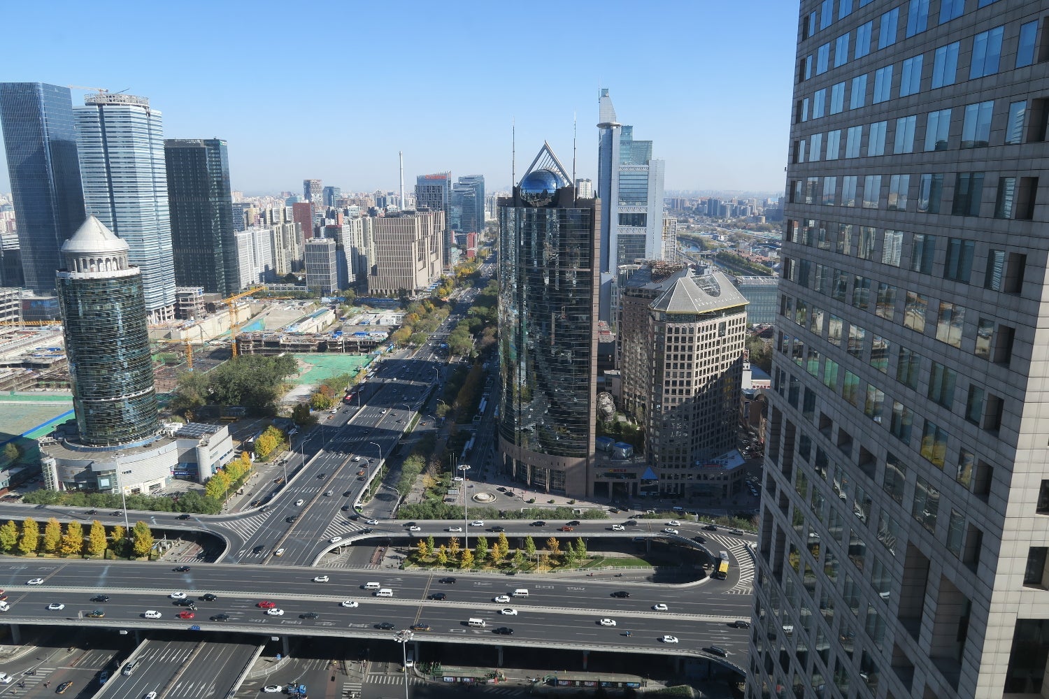 The Park Hyatt Beijing was on floors 37 to 49 and 59 to 66 of the Beijing Yintai Centre. Along with the Park Hyatt, the complex contained offices, shopping and restaurants. It was in the Central Business District across from the China World Trade Center and near the embassy district. But it was also well connected to most tourist sites.