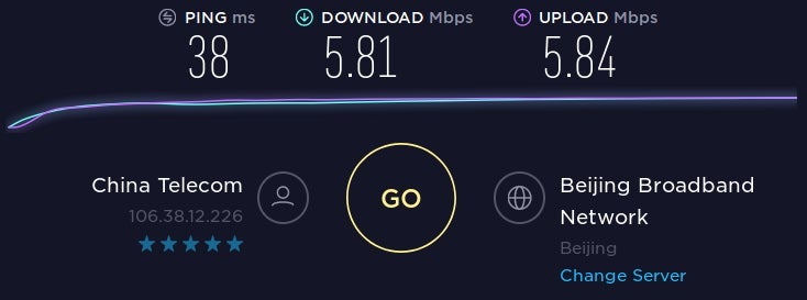 But the internet speed wasn't particularly fast either, measuring 5.81 Mbps download and 5.84 Mbps upload. Once I connected to a US location via a VPN, the speed dropped to 4.38 Mbps download and 2.27 Mbps upload.
