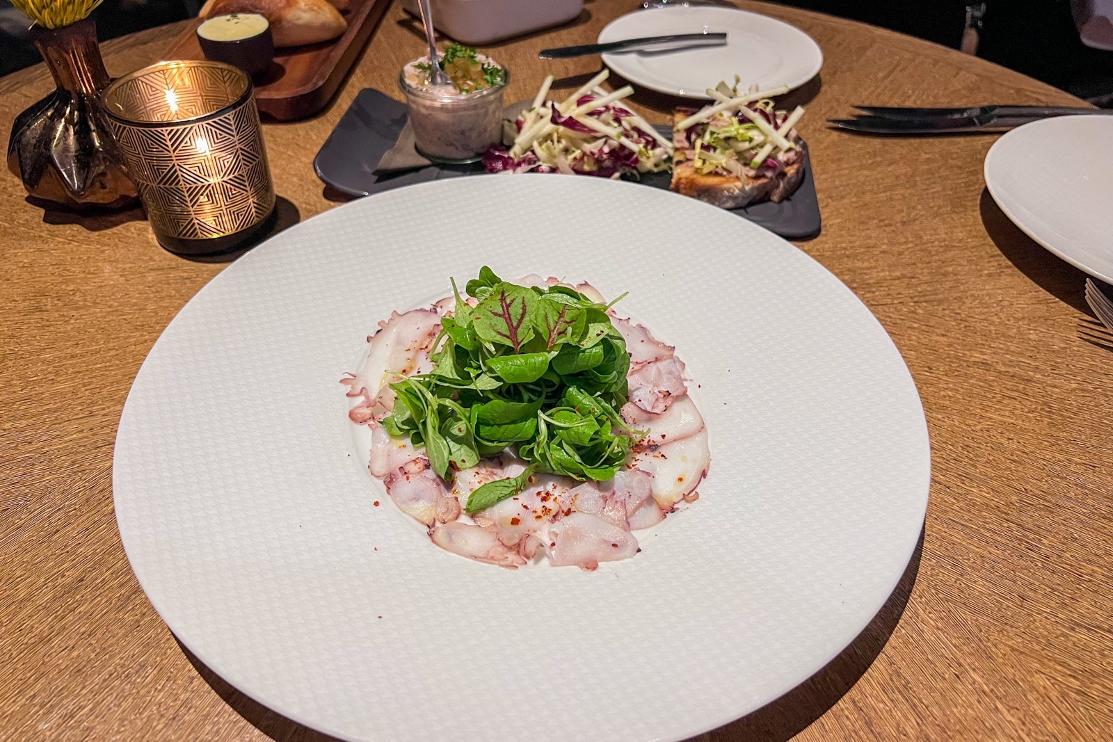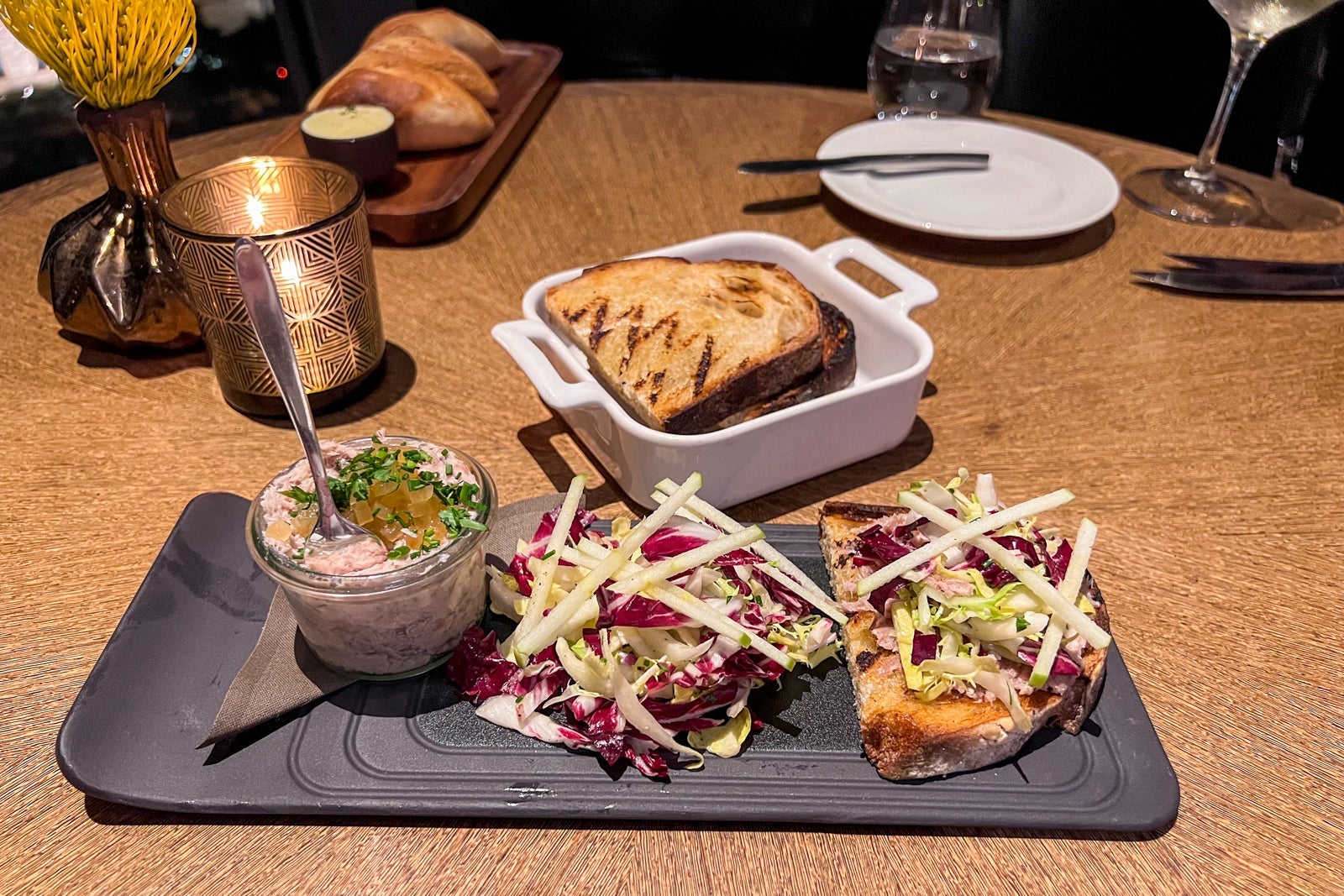 We started with a $30 octopus carpaccio and $28 rillettes comprised of duck confit and Duroc pork that were served with sourdough to spread the shredded meat over. The octopus was certainly the lighter, fresh option of the two and came adorned with mache greens and seasoned with pepper and a tart (but not overly so) sauce to finish things off. The rillette, however, was like high-end comfort food with each satisfying bite of meaty spread on the crusty, thick sourdough.