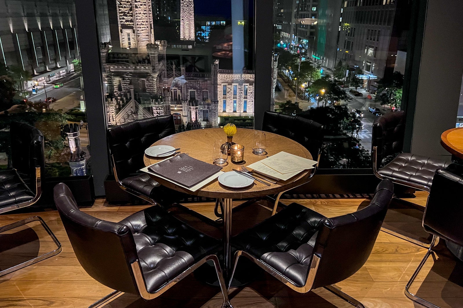 The expansive restaurant was decorated with dark wood panels and tables. There were sleek, black leather chairs (showing the Park Hyatt Chicago team isn't entirely over the leather and chrome look previously seen in guest rooms upstairs) and pops of lighter hues in the form of gray rugs and floor-to-ceiling windows overlooking the Chicago Water Tower and Lake Michigan, which was more easily viewed at breakfast than over dinner.