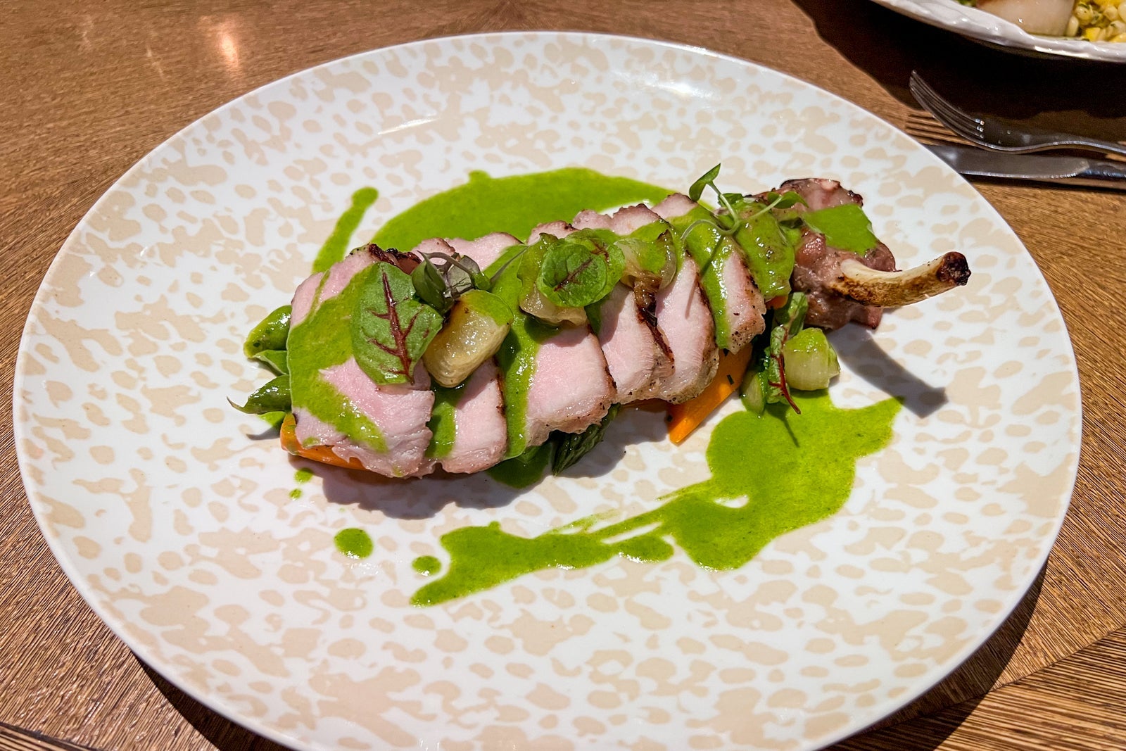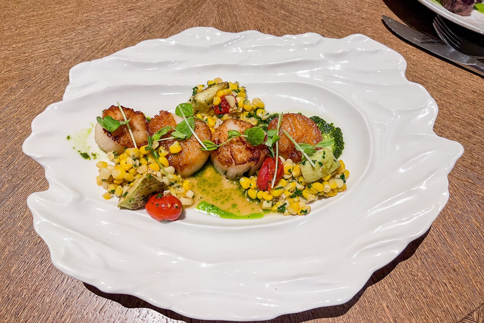 Moving on to our main courses, we certainly ate well but rang up quite a tab. The delicious scallops served over roasted corn, squash, tomato and pesto clocked in at $56 — pricey for four scallops (though still less than the Park Hyatt's overnight parking rate). I might be a little biased hailing from coastal Massachusetts, where scallops aren't so expensive at even very high-end restaurants. It was certainly a delicious, refined dish, but it was hard to get my head around the pricing.