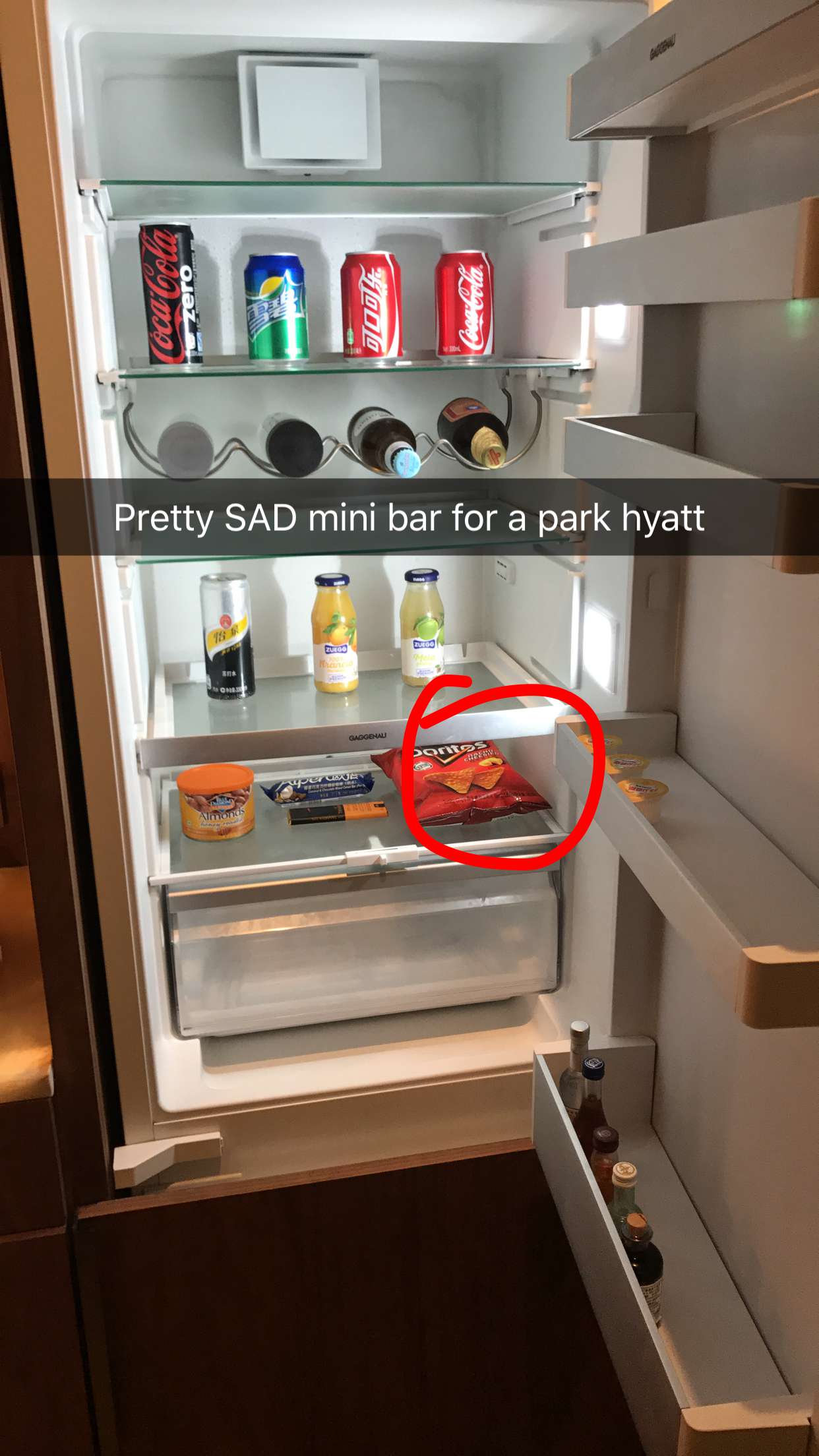 The only downside to this room was the mini-bar, which I found to be pathetic and sparse. There was even a bag of Doritos in the fridge, too, which I found confusing.