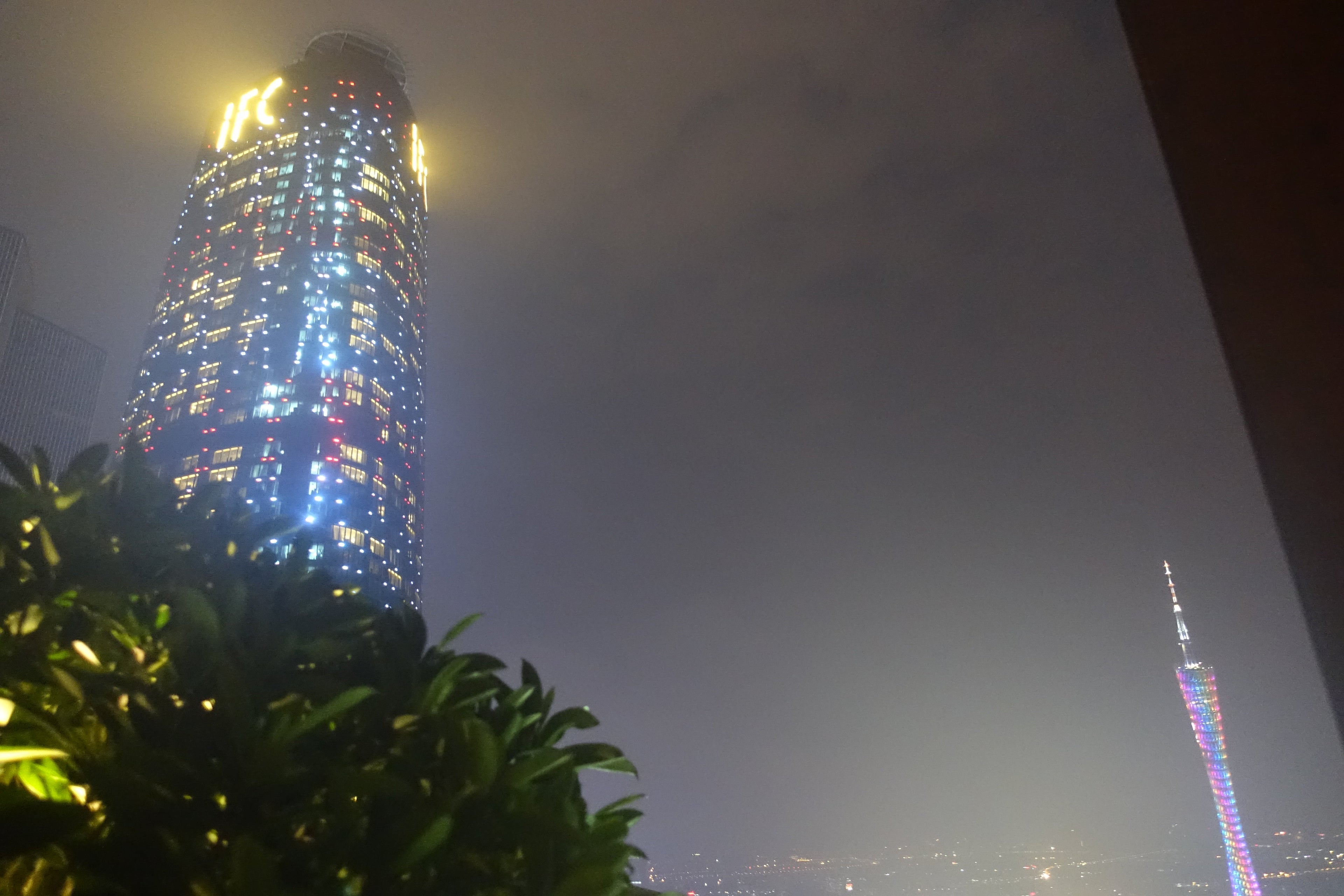 From the rooftop bar, there are stellar views of the Canton Tower, which is lit up in rainbow colors at night. I really love that building.