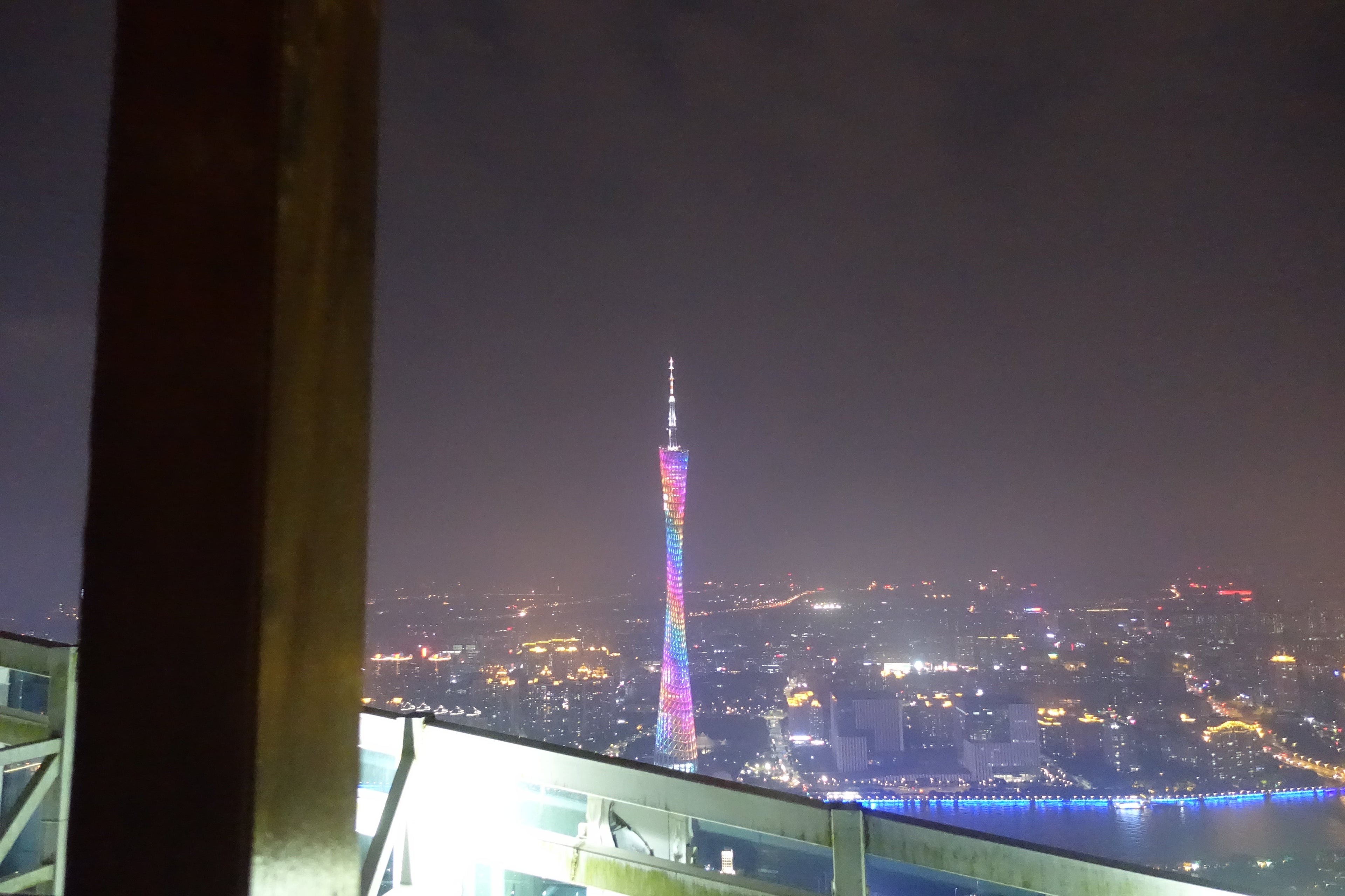 Once you get to the 70th floor, you'll be able to get an amazing look at Guangzhou's colorful skyline.