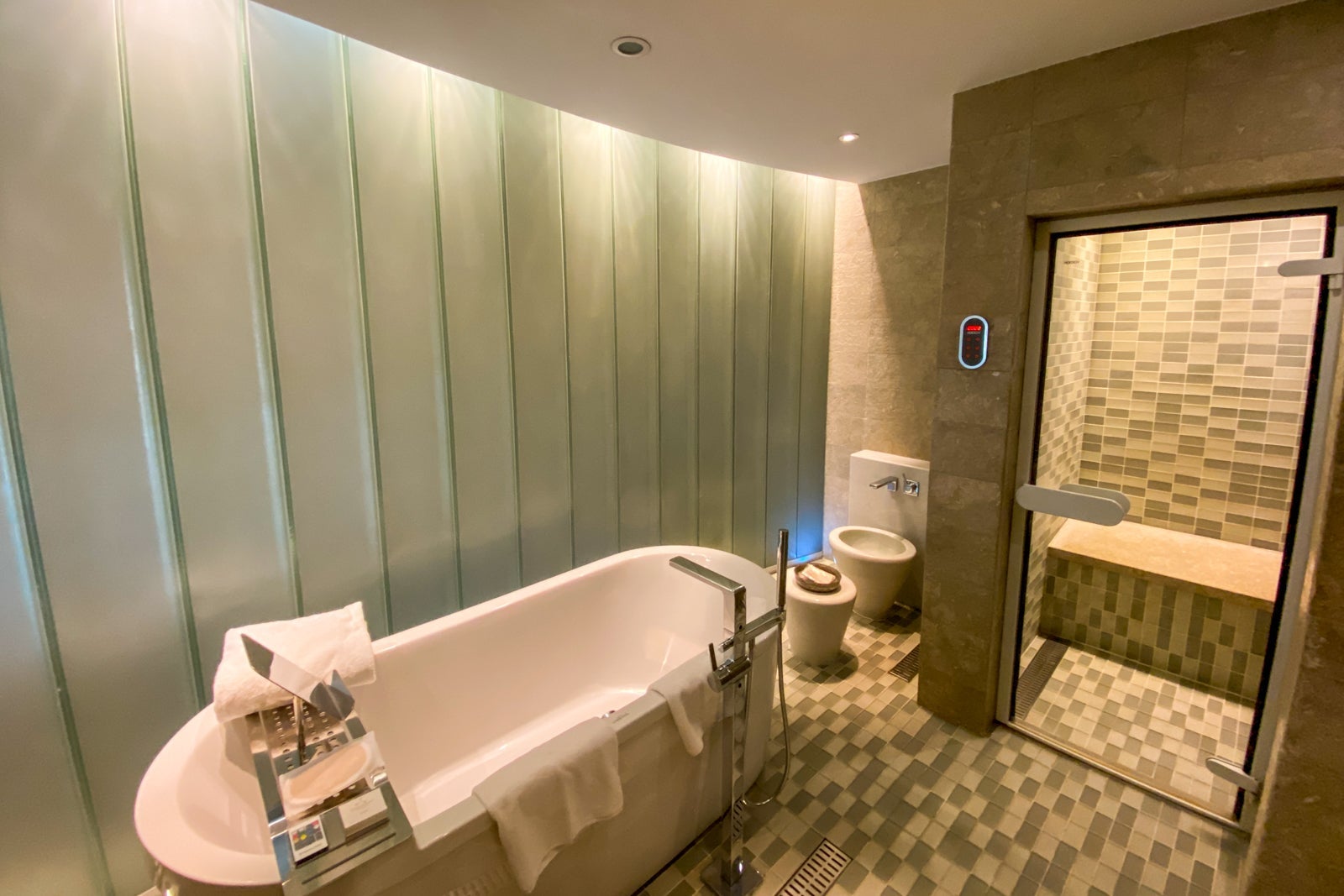 The Premium-level room is a step above the standard king and includes one of the most distinctive in-room features I've ever experienced: an authentic Turkish bath complete with a heated stone seat, a splash tub, a steam shower and filtered water station. I loved being able to experience a traditional hammam without leaving my room.