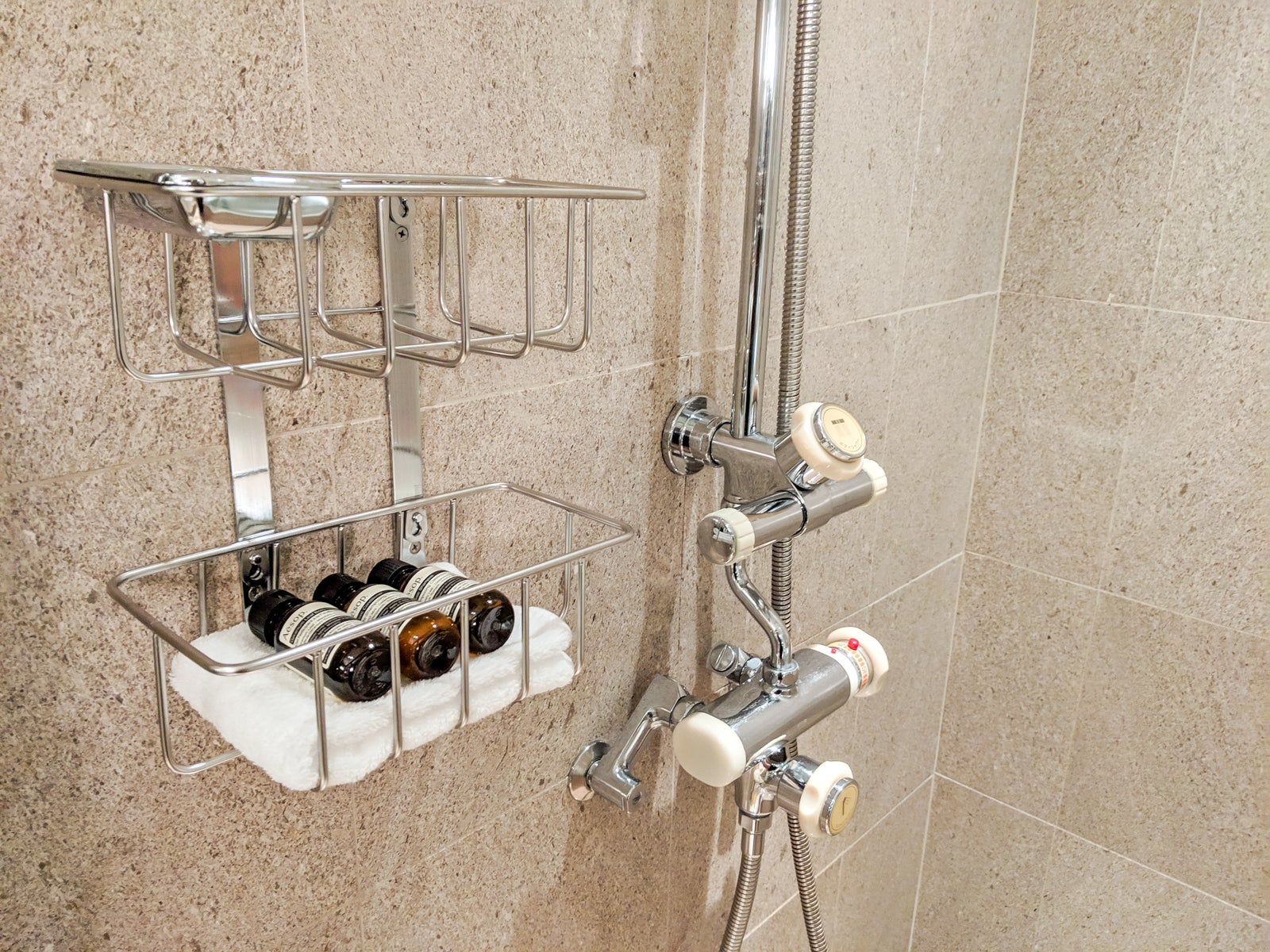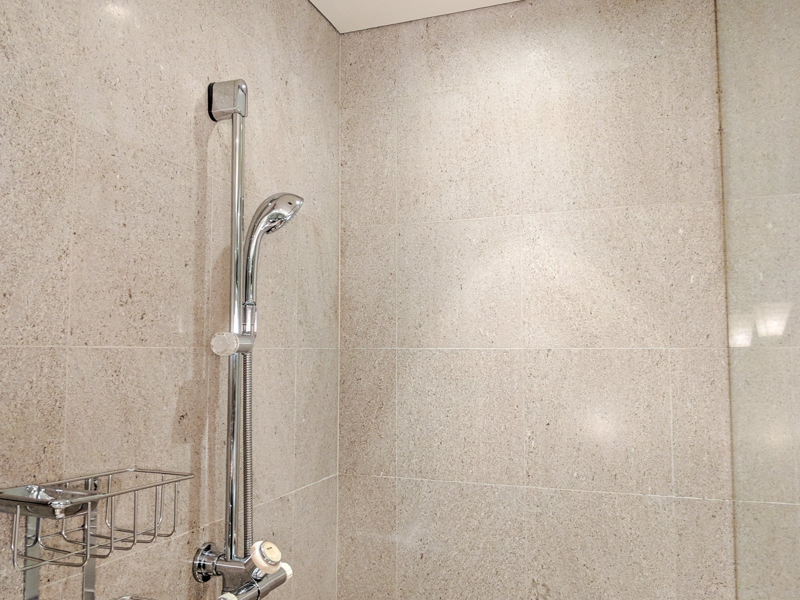 The shower was large, and the ceiling was high. It passed the TPG shower test for sure.