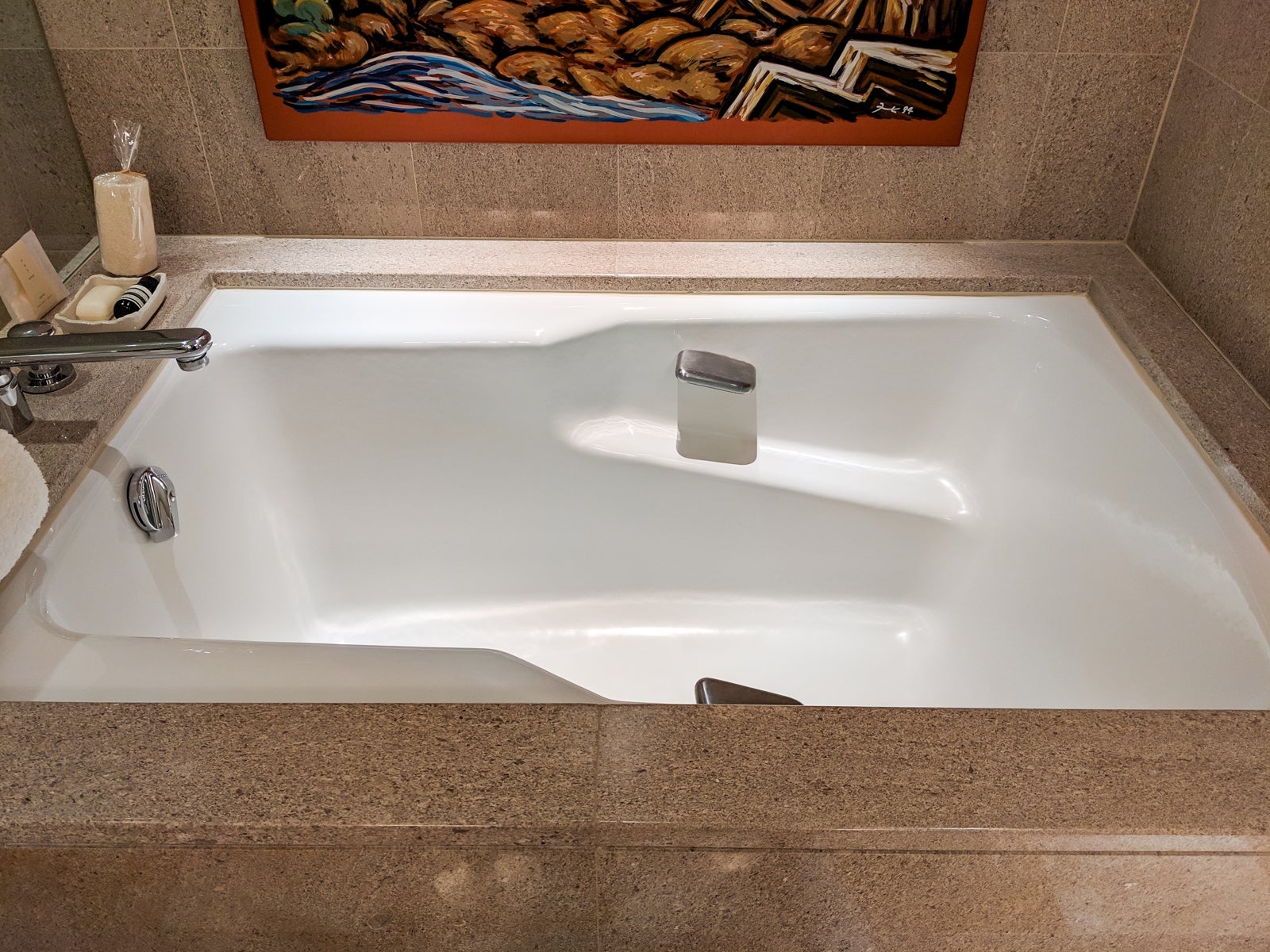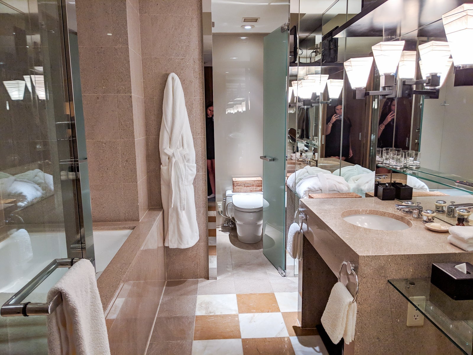 The bathroom was fairly spacious, with both a separate tub and shower, as well as an automatic toilet.