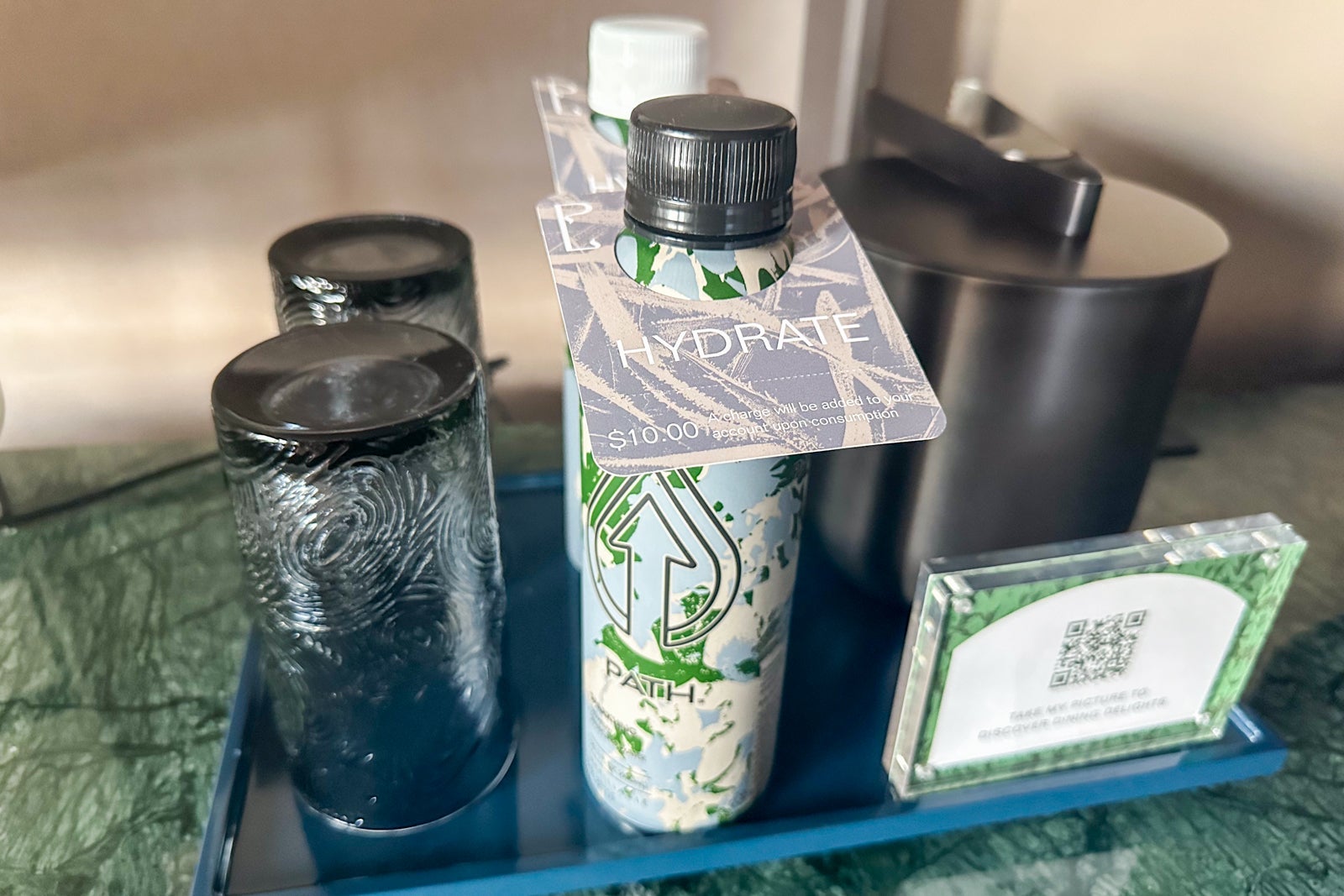 Other than its food and beverage outlets and a couple of event spaces, the only on-site facility available to guests is a serviceable gym with Peloton bikes and a Lululemon Mirror. Judging by the scene in the lobby and lounges, though, most guests seemed more inclined to get their workout in by walking to nearby stores and carrying full shopping bags back.