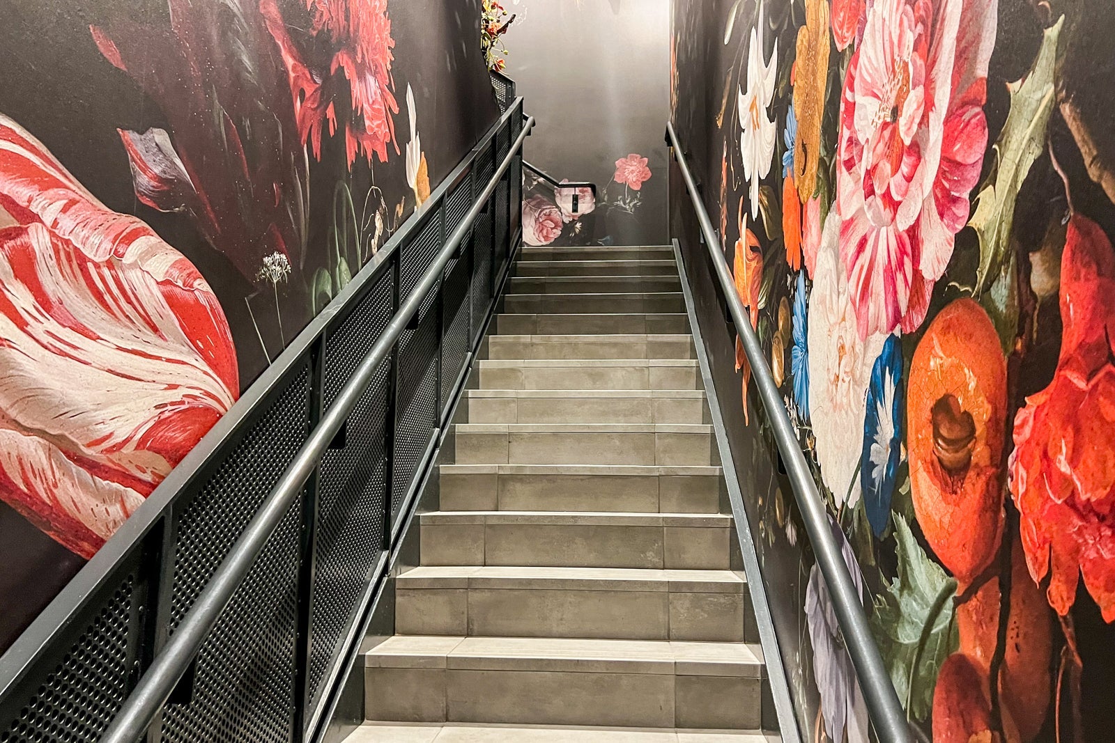 Furniture throughout the property is low-slung, sleek and rounded, with dusty pink and muted forest green hues foregrounded. Murals and other painted details on the walls showcase plants and small animals, while an abundance of flowers imbue the public areas and accommodations with a joyful and fresh vibe.