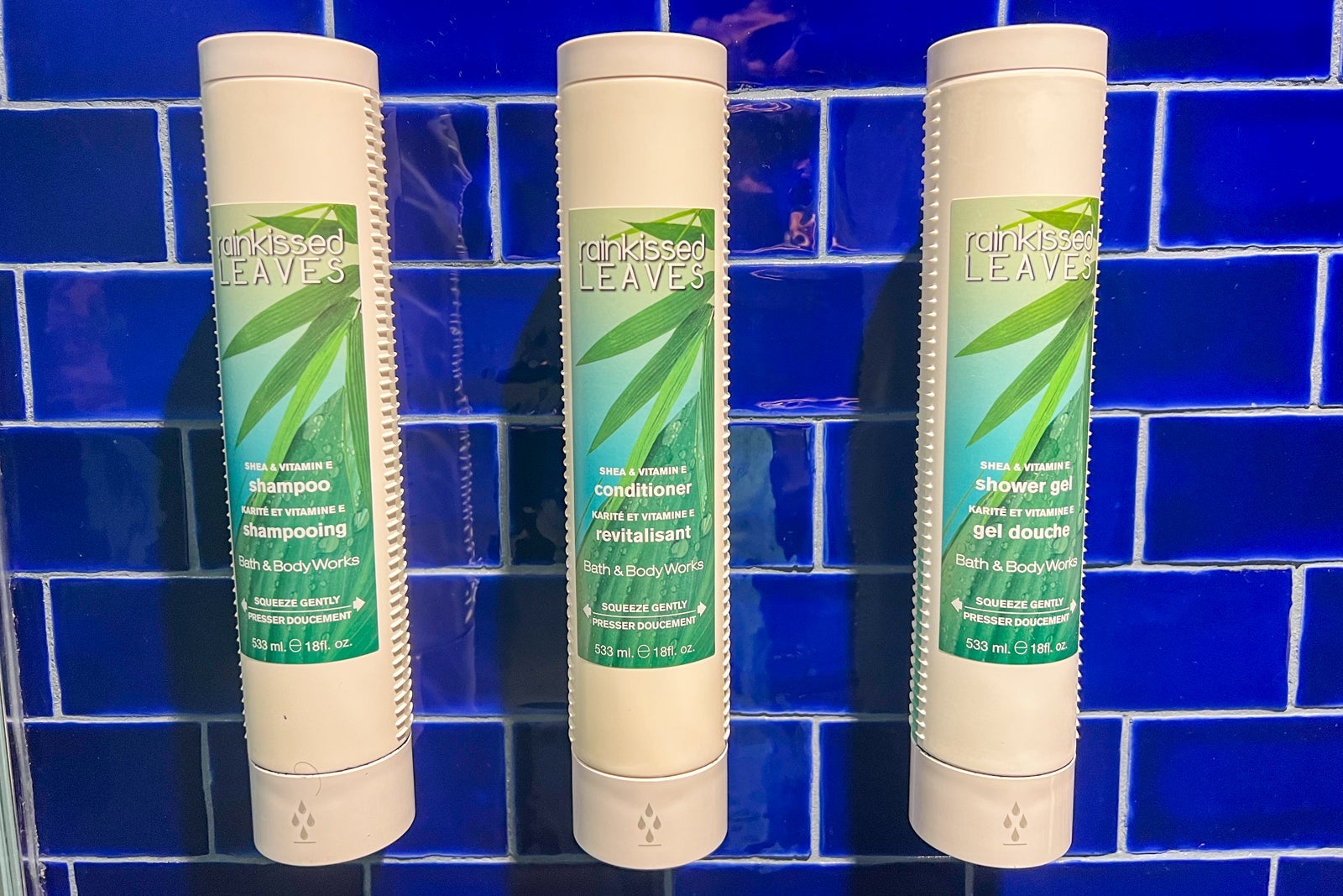• The shower amenities were a bit hard to use. The full-size bottles, which were attached to the wall, were the type that you squeeze to pump out product. I had to fight with the bottles a little bit in order to get the contents.