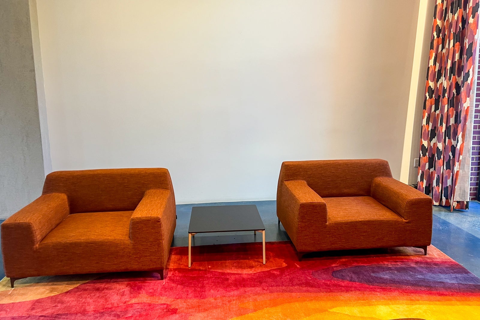 • The desk in the room wasn't the most remote-work friendly. The desk chair was more of a bar stool, so if you're looking for a place to do some work, I suggest going downstairs to the courtyard or lobby instead.