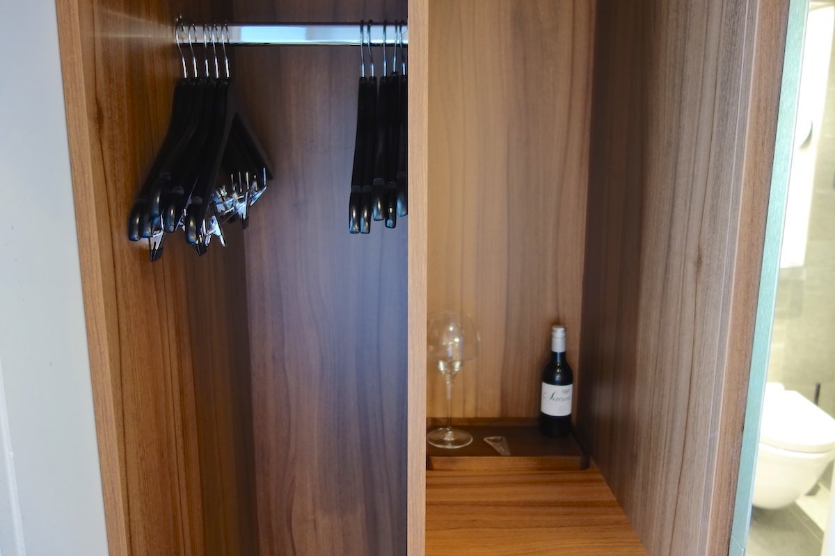 The other had a drawer with the minibar containing sodas, wine and beer.