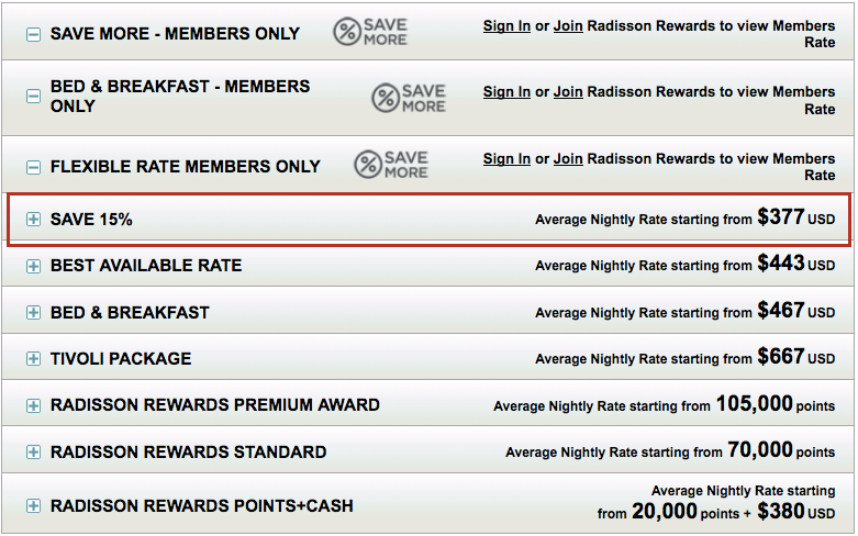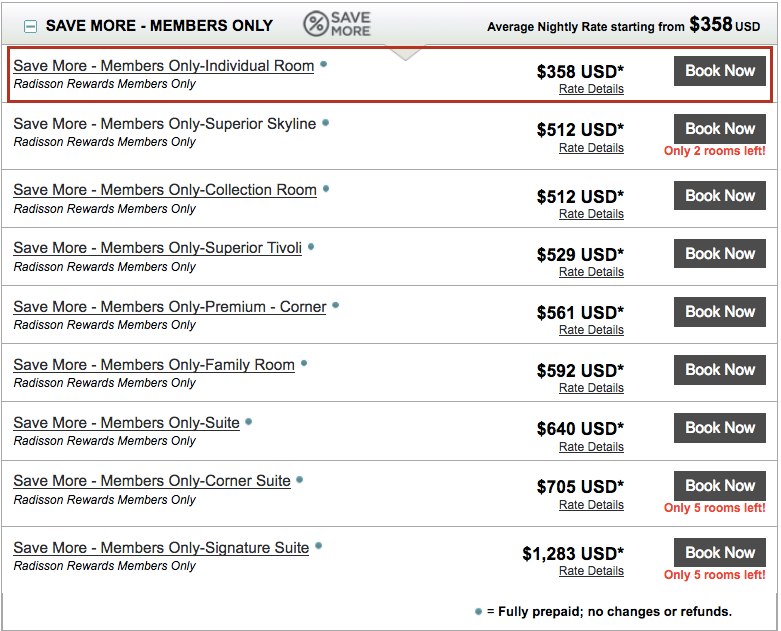 I would suggest logging into your Radisson Rewards account before searching, because that brought the rates down to $358 and $512, respectively.