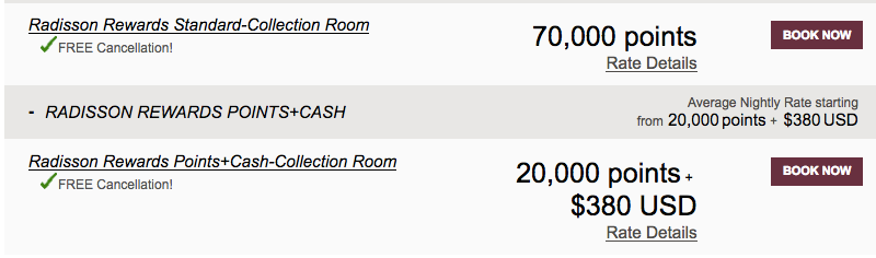 There were also award nights available for 70,000 points, or 20,000 points plus $380 for a Collection Room.