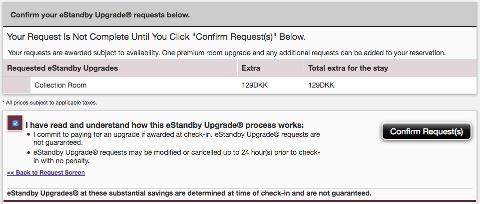 That seemed like a much better option than paying $156, which was the difference between an Individual and a Collection room at the time of booking, so I clicked on the agreement for an eStandby upgrade and took my chances.