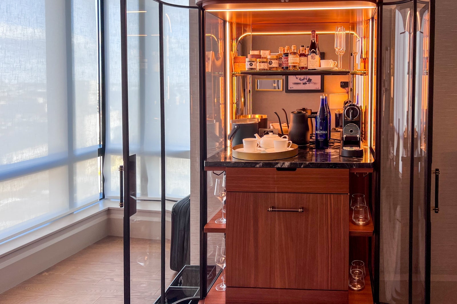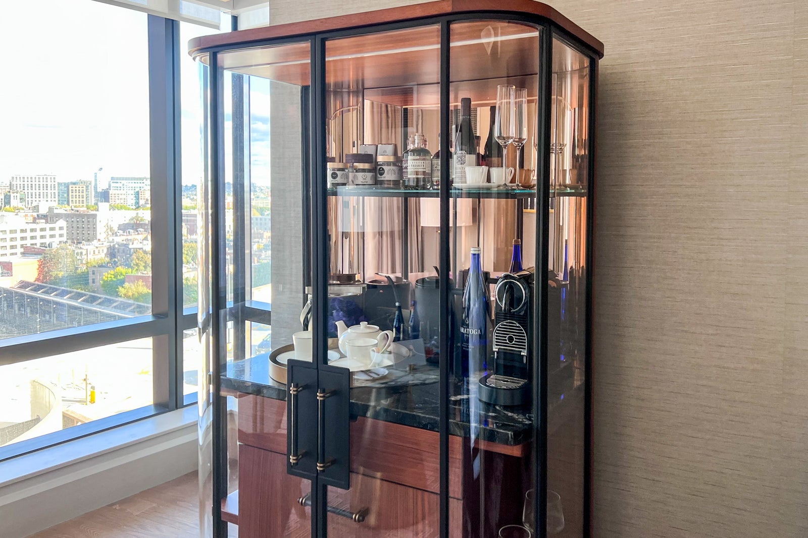 The local touches extended from the welcome drink to the minibar housed in a glass cabinet with offerings like an old fashioned from local Bully Boy Distillery ($28) and a small bottle of South Boston Irish Whiskey ($25). A kettle and Nespresso machine were also in the minibar for the complimentary tea and espresso.