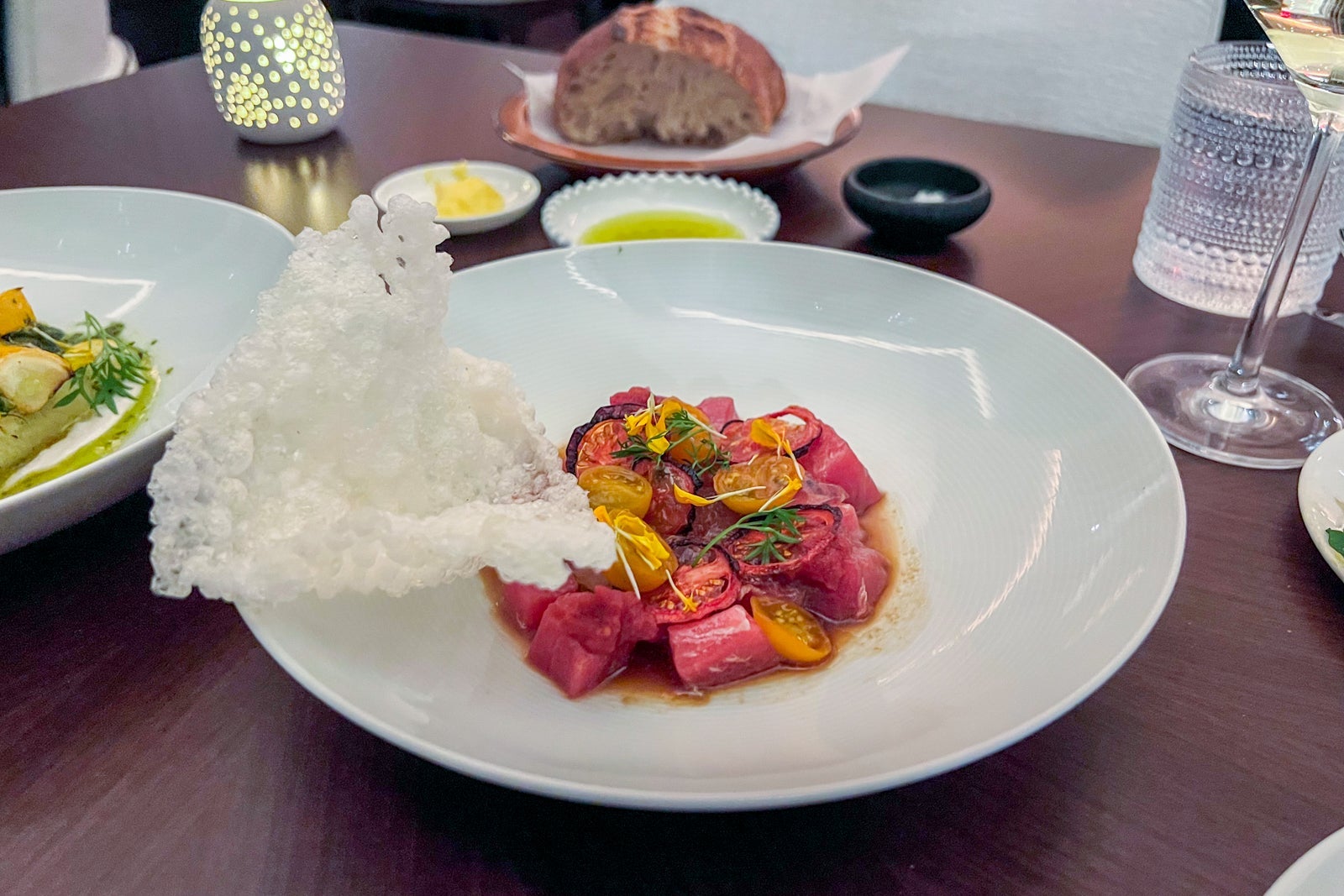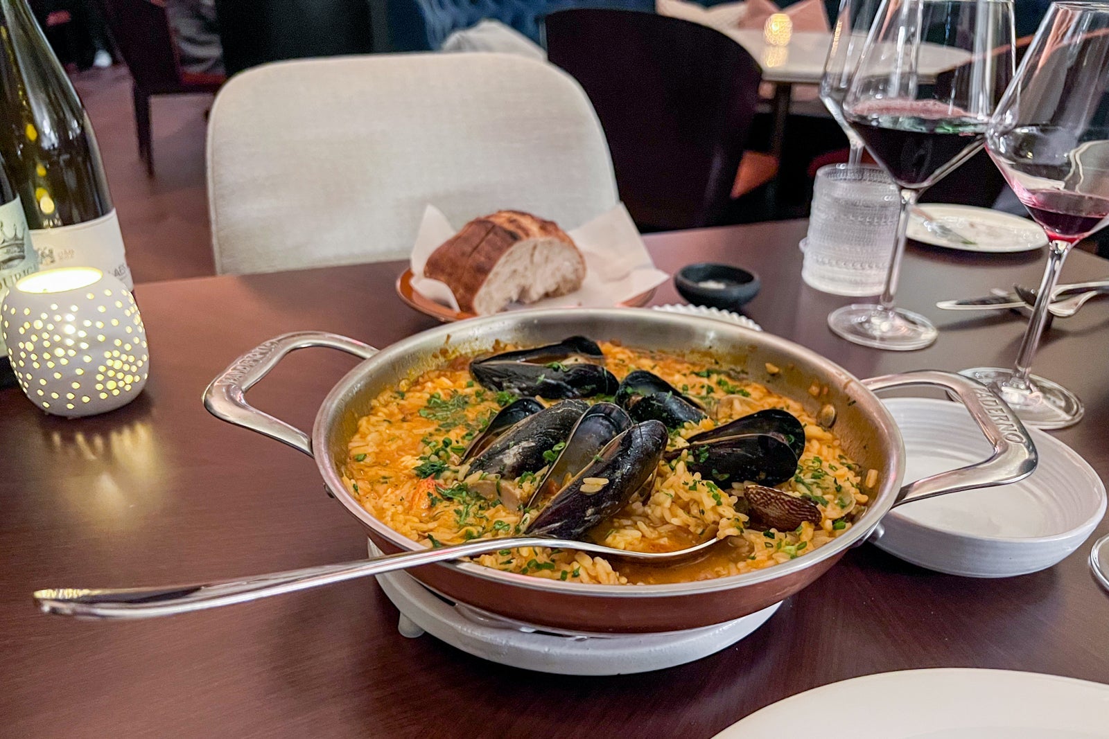 My husband and I shared cod croquettes ($12) and sea urchin uni toast ($21) to start before moving on to grilled squash and zucchini with pesto ($27) and bluefin tuna with tomatoes ($26). The tuna was a particular highlight of the early courses. Arroz de mariscos — a $72 rice dish for two with an abundance of shrimp, lobster, mussels and clams — was a mouthwatering main course. Given how Contessa, the rooftop restaurant at The Newbury Boston, has become a cutthroat affair to score a dinner reservation for, it's easy to see Amar rising to that rank in Greater Boston. Based on the late turn of tables we saw toward the end of our visit, it likely already has.