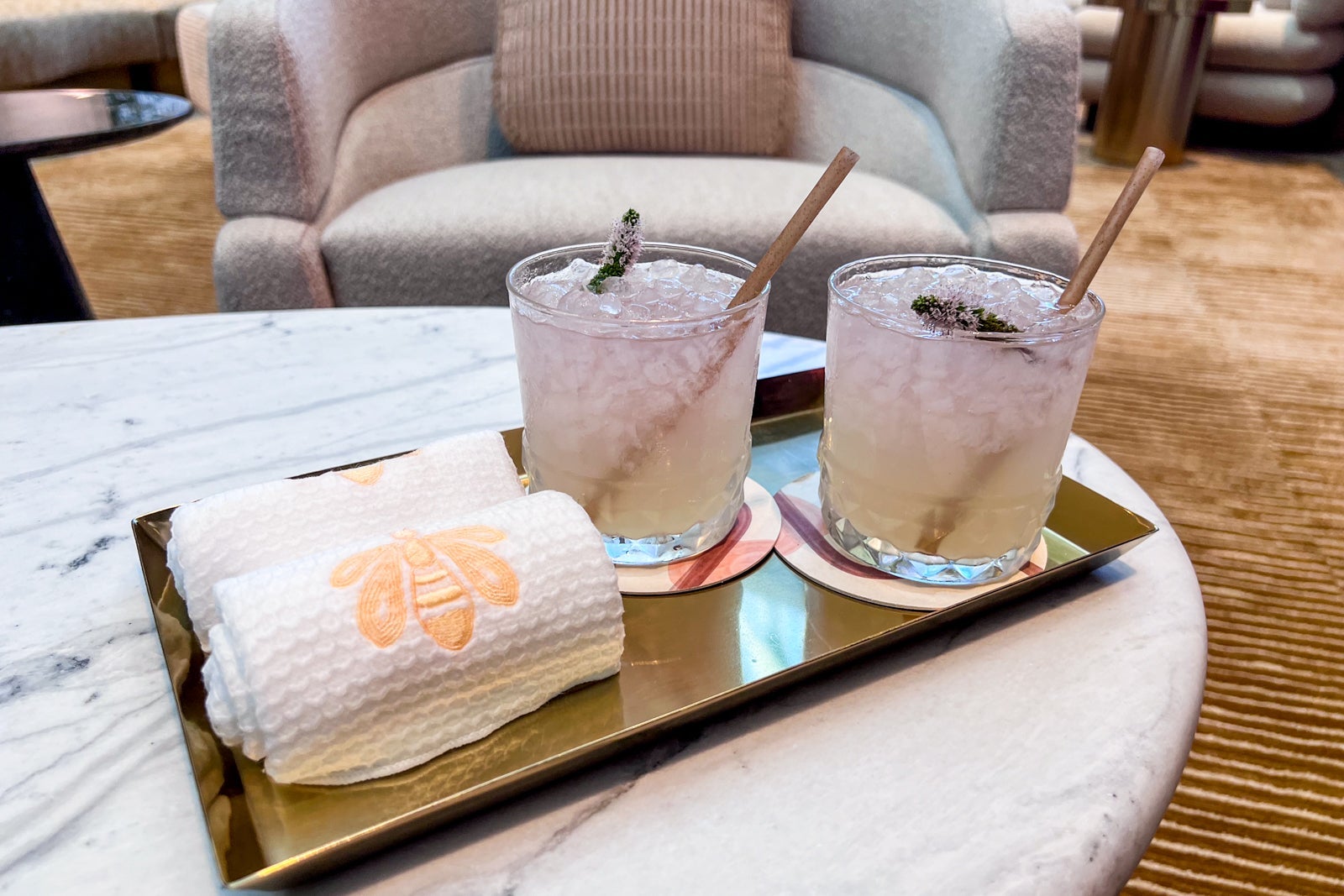My Regent Experience Manager greeted my husband and me in the lobby with chilled towels and lavender-infused lemonade to sip while taking care of incidentals and confirming details of our stay. Be sure to check out the expansive monitor in the check-in area, as it's supposed to livestream sunrise and sunset over the Santa Monica Pier (which you can also experience for yourself in person just a few steps from the back entrance of the hotel). While my room was immediately ready, guests arriving early can also take advantage of the Regent's arrivals lounge, which features showers to freshen up and plenty of work space and seating areas to kill time until check-in.