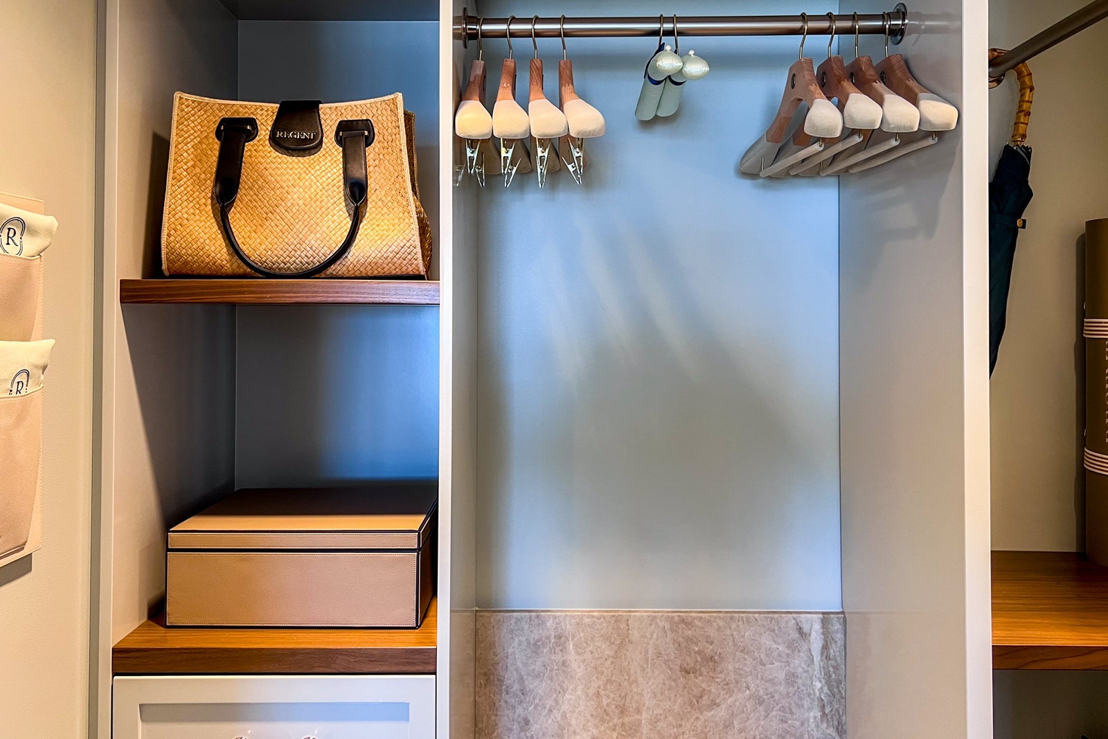 Just off the bedroom was a vanity area and walk-in closet with an abundance of supplies and amenities to help along with the primping process, like a Dyson hairdryer and a clothes steamer. Part of Regent Santa Monica Beach's "With Compliments" extras includes free laundry or pressing of three items of clothing during a stay — enough to look your best and wrinkle-free for a meal at Orla downstairs. There was also a decorative box in the vanity area stocked with products you may have left home, like a shaving kit, dental kit, loofah and mouthwash.