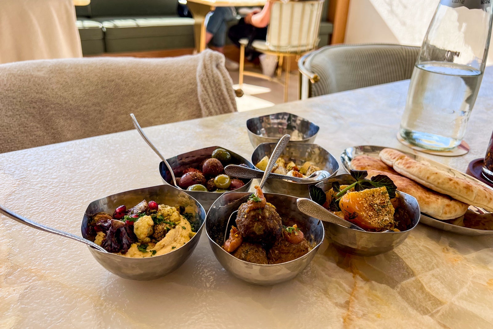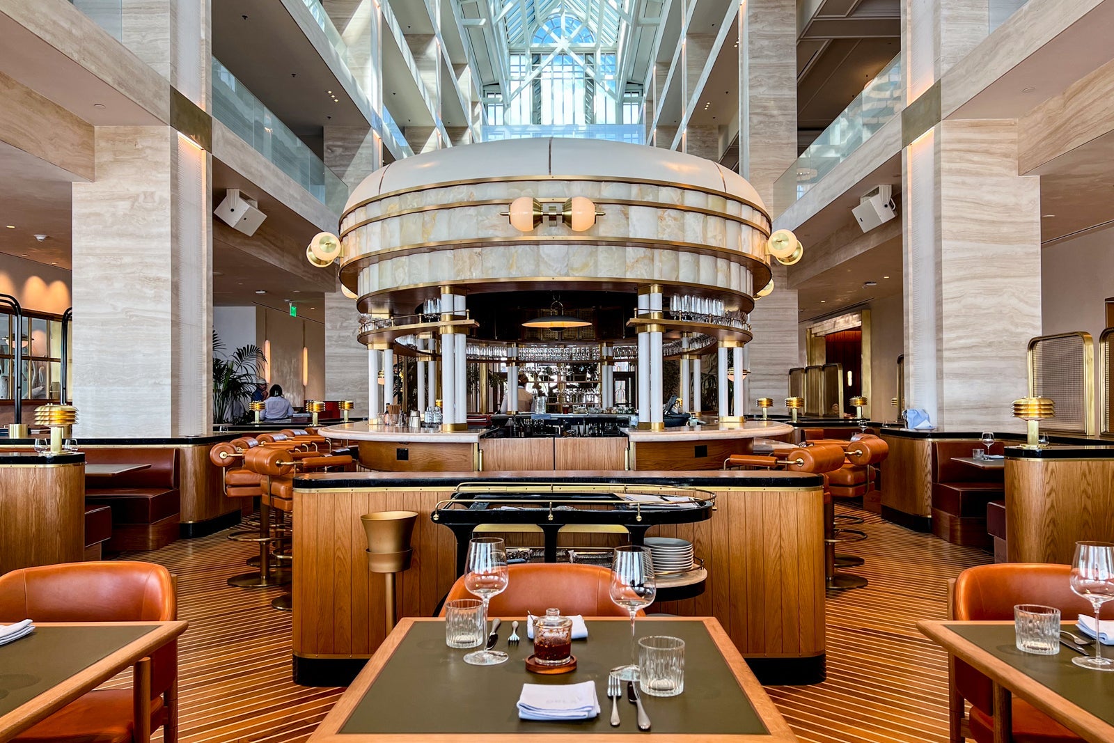 The indoor dining area feels like an upscale brasserie (well, as much as it can feel like a cute brasserie within a five-story atrium lobby), with nods to the nautical vibes of Southern California: Brass accents and yacht-style plank flooring give the space an at-sea feel without the drama of motion sickness. But the hottest tables in town are found on Orla's veranda, where you can soak in Pacific Ocean views while nibbling on mezze and sipping a Hot to Handle zero-proof tequila mocktail ($18).