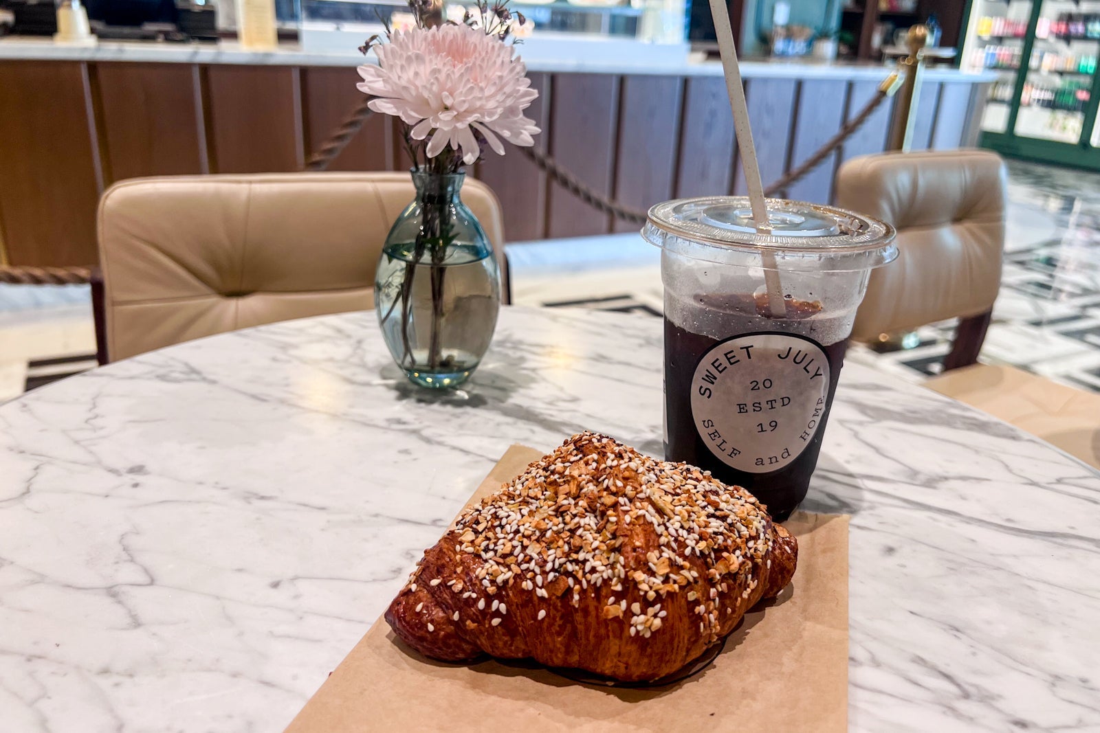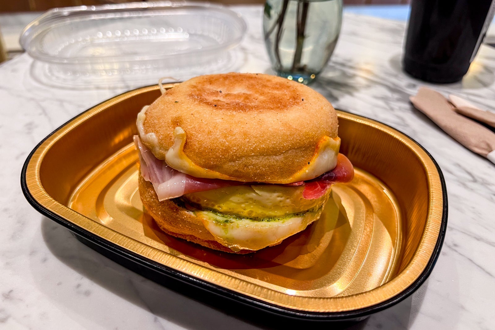 But it's not cheap to look this fabulous: A croissant and iced coffee clocked in at just under $20. The breakfast sandwich with prosciutto and pesto ($16) was a highlight, but the real showstopper to start the day was the Everything Croissant stuffed with scallion cream cheese ($11) that we got to split. I mourned having to fork over the remaining half after I had the first few bites.