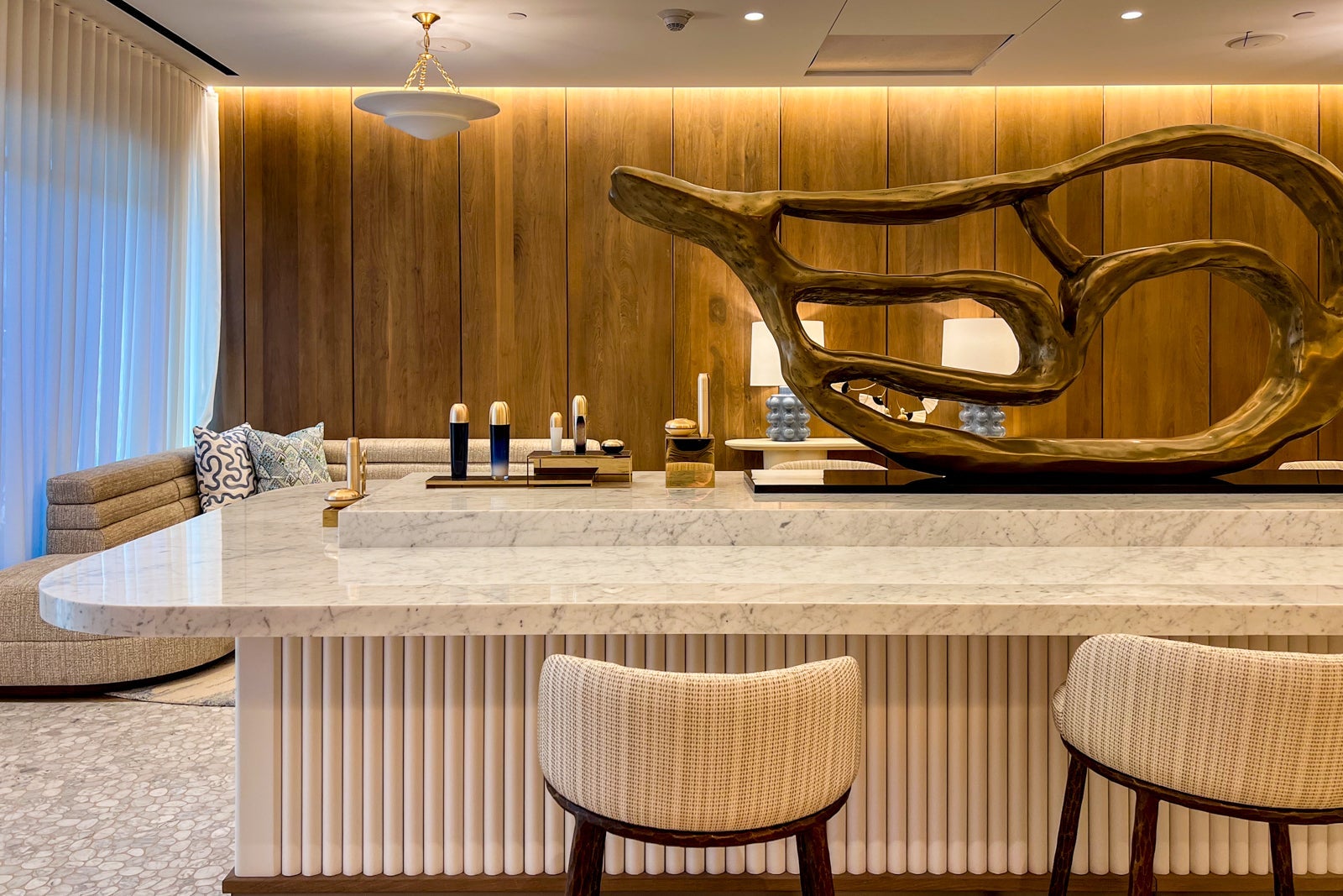 A Regent Experience Manager will reach out ahead of your arrival to discuss any extra needs or personal touches, and they'll also talk about curating your room's complimentary Refreshment Gallery (Regent's luxe term for the minibar). Once you arrive, you'll be whisked into the Regent's atrium lobby decked out with curved, plush couches and rounded upholstered chairs — all in various shades of sandstone.