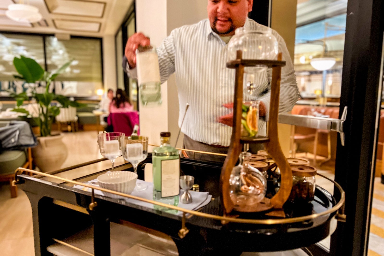 Those looking for a little theatrics added to their cocktails should also consider the $35 Tableside Mediterranean Gintonico, which is crafted in a tableside cart from gin infused with spices and botanicals procured from the Santa Monica farmer's market.