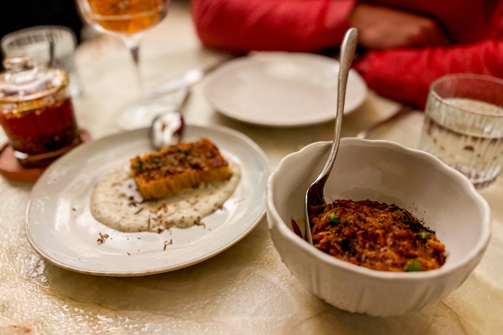 Guests also have the option of adding on a $14 middle course of either macaroni bechamel or spicy duck orzo. An $8 dessert supplement is also on the menu. At night, Orla offers a souped-up, curated version called the My Egypt Experience, which runs $105 per person (with the requirement that the entire table participates) and includes a variety of entrees like a char-grilled branzino and a kebab platter.