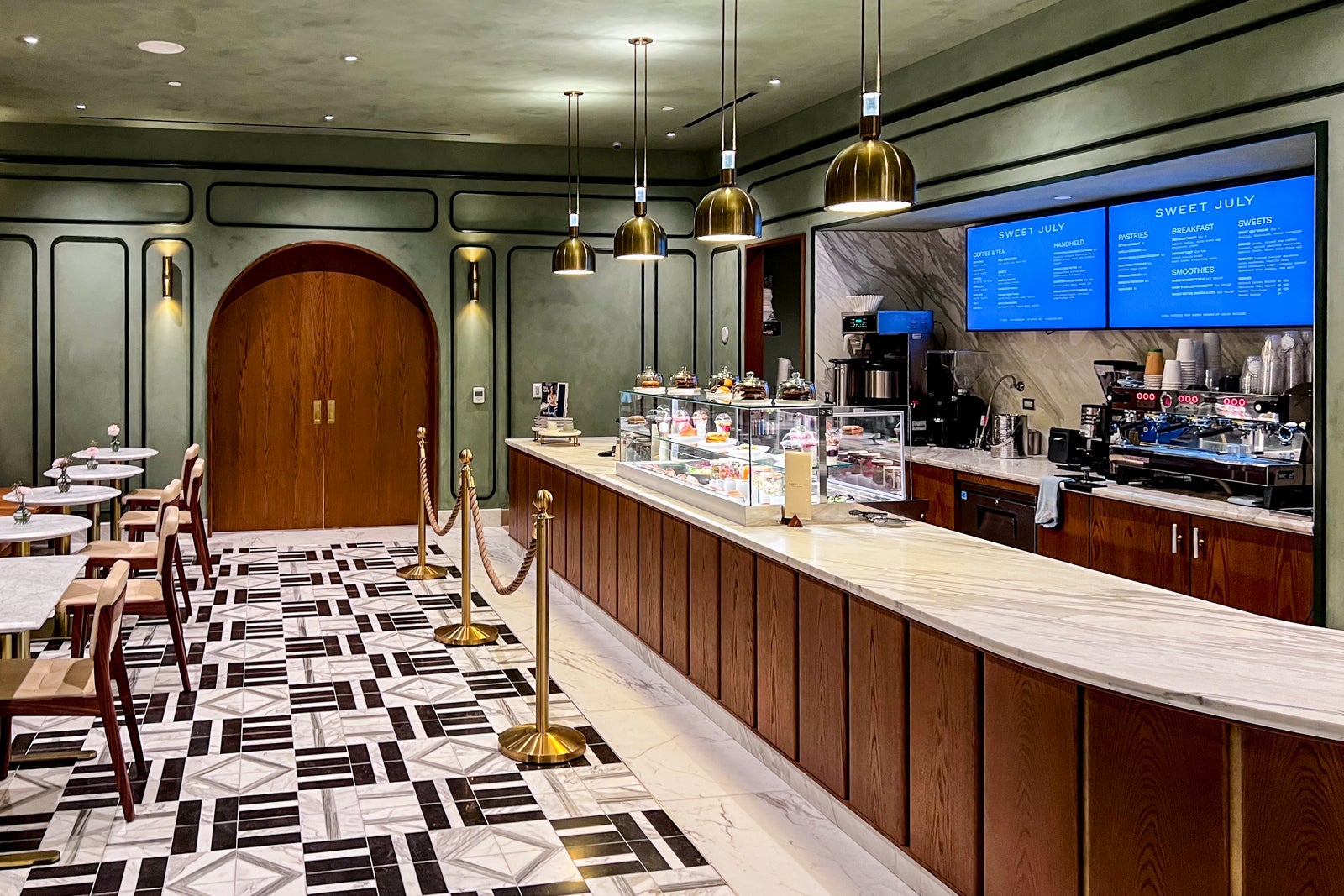 Over the span of our two-night trip, we frequented both venues, and you won't go wrong with either. Sweet July is a casual spot to enjoy an iced coffee and pastry to get the day going, and to peruse some retail items (Curry's Sweet July brand is popular for its olive oil, house blend coffee and mugs, to name a few). The space is picture-perfect with bistro seating, wood-paneled counters and refrigerators fit for a "Real Housewives of Beverly Hills" kitchen.