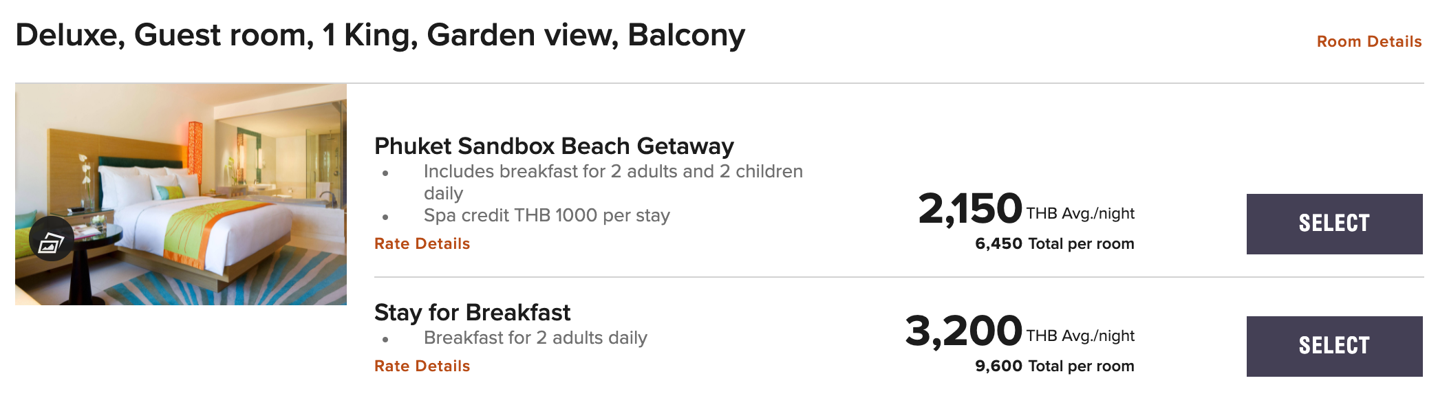 The Renaissance Phuket is a Category 5 property, which means you'll spend 35,000 Marriott Bonvoy points per night on nights with standard award availability or just 30,000 on off-peak nights. There are a dozen Marriott Bonvoy properties in Phuket, ranging from the Category 3 Four Points to the Ritz-Carlton Reserve.